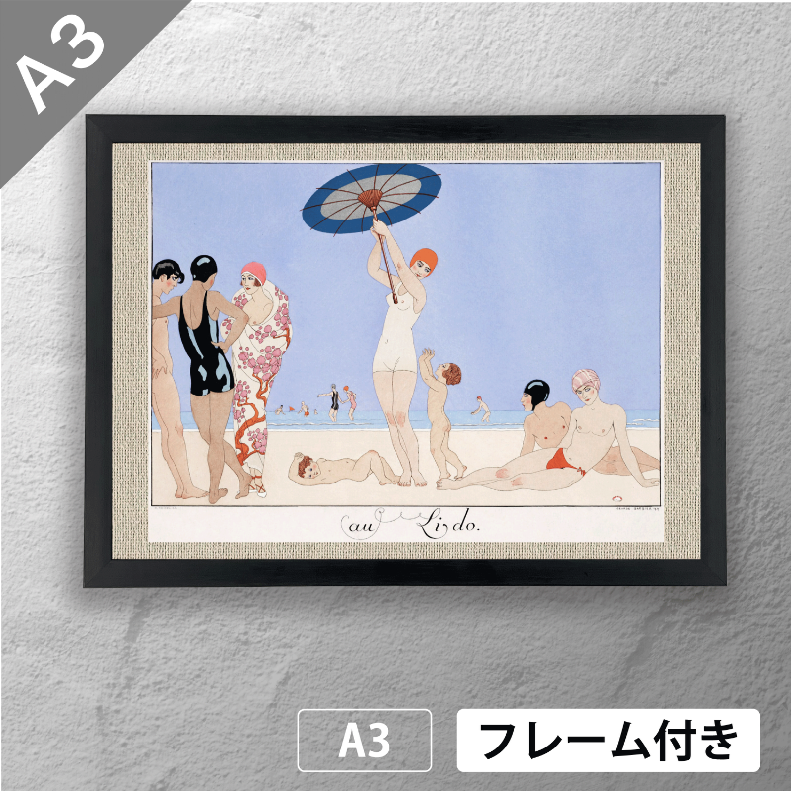 ジョルジュ・バルビエ(George Barbier) 「 Au Lido Plate no.14 」 アール・デコ アートポスター A3 マット その81 【フレーム付】《IN》