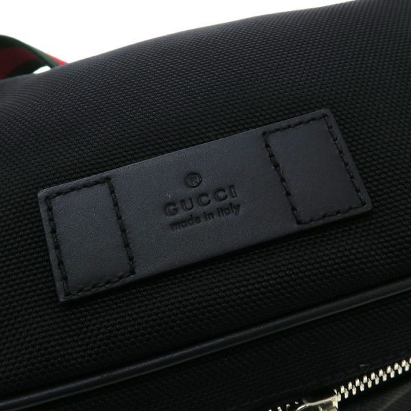 グッチからちょっとしたお出掛けにピッタリな『シェリーライボディバッグ/アウトレット』のご紹介です!ブラックキャンバス地にレッド×グリーンのシェリーラインがグッチらしいクラシカルな印象です!シンプルなので年齢問わずお使いいただけますね!間口はファスナータイプで背面にファスナーポケットが備わっており小物の収納わけも◎お財布、スマホ、タバコなどが入るサイズ感でちょっとしたお出掛けにオススメです!