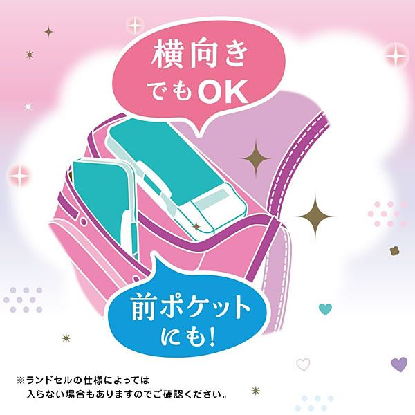 最薄クラスのスリムボディーでランドセルへは横向きにも、前ポケットにも、スキ間へスッキリ収納!しかも頑丈!