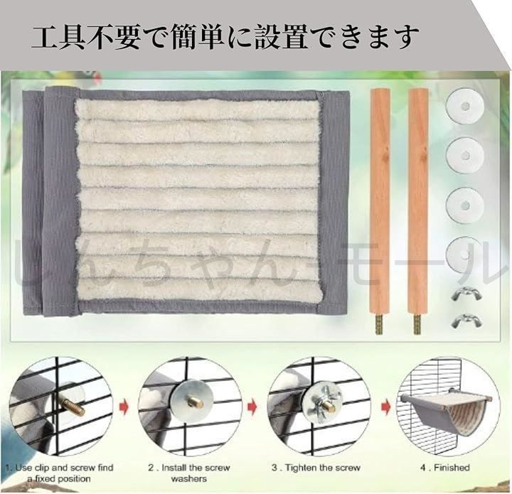 「取り付けと清掃が簡単」バードベッドには木製のブラケットが付いています。