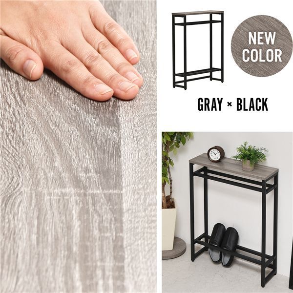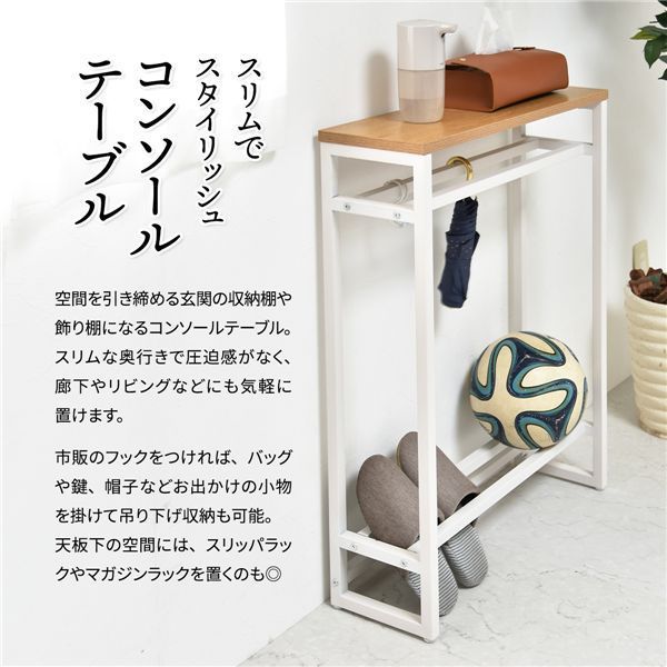廊下やリビングでの観葉植物や鍵などの置き場としても活躍。ちょっとした置き場所が欲しい時に便利なコンソールテーブルです。上下に2本のバーがあるので小物や傘の収納、ボールやスリッパの収納に。