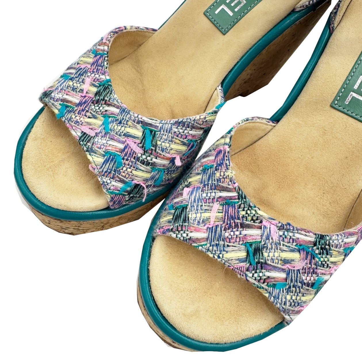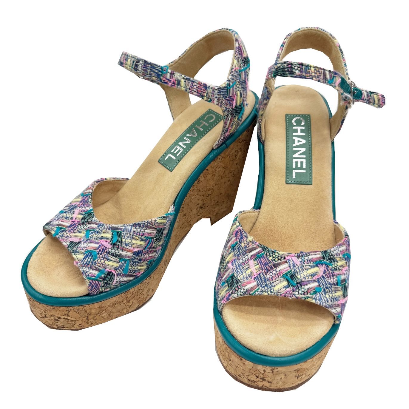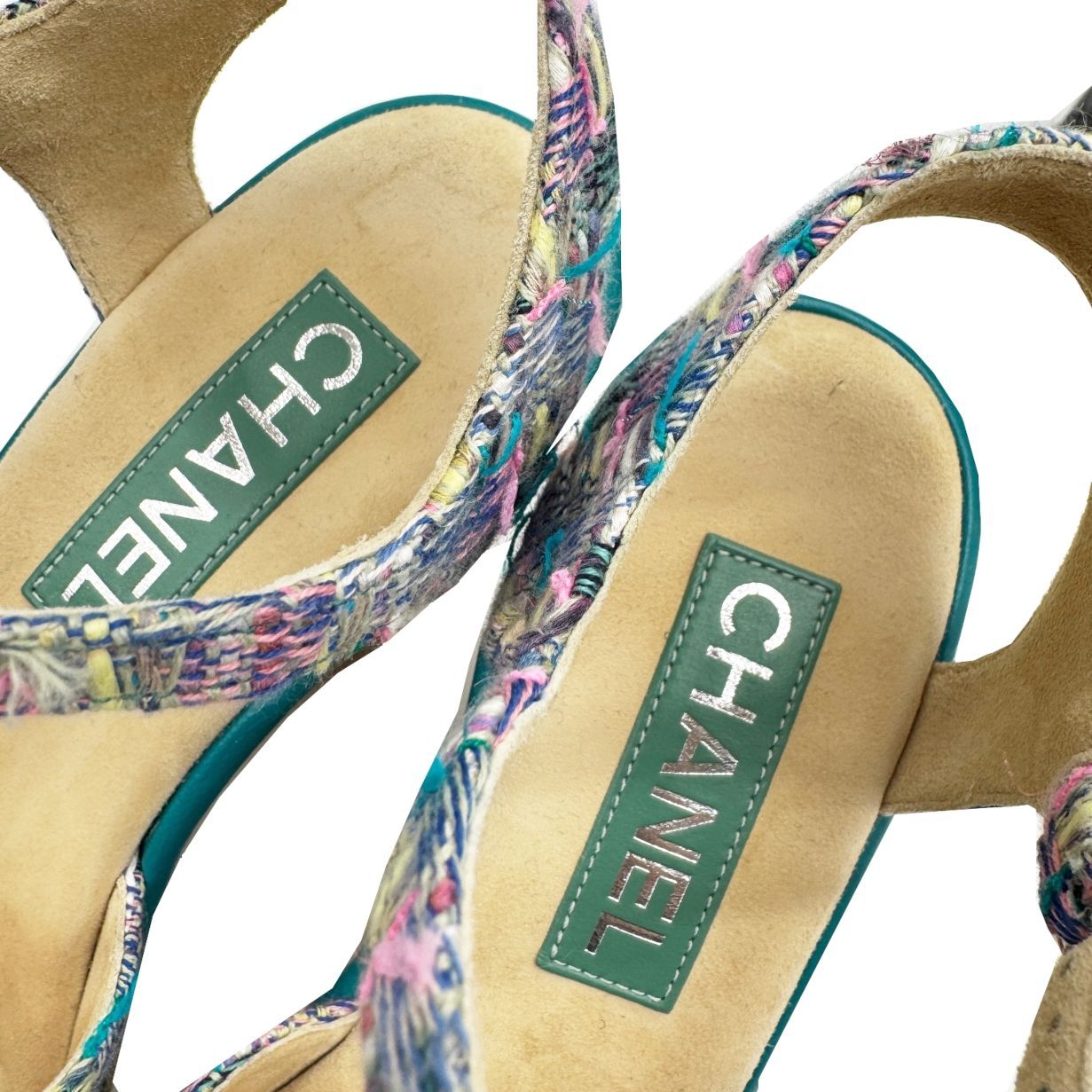 【中古】CHANEL シャネル ウッドサンダル ツイード ウェッジソール 38サイズ マルチカラー G39812 日本サイズ 24~24.5 レディース お洒落 人気