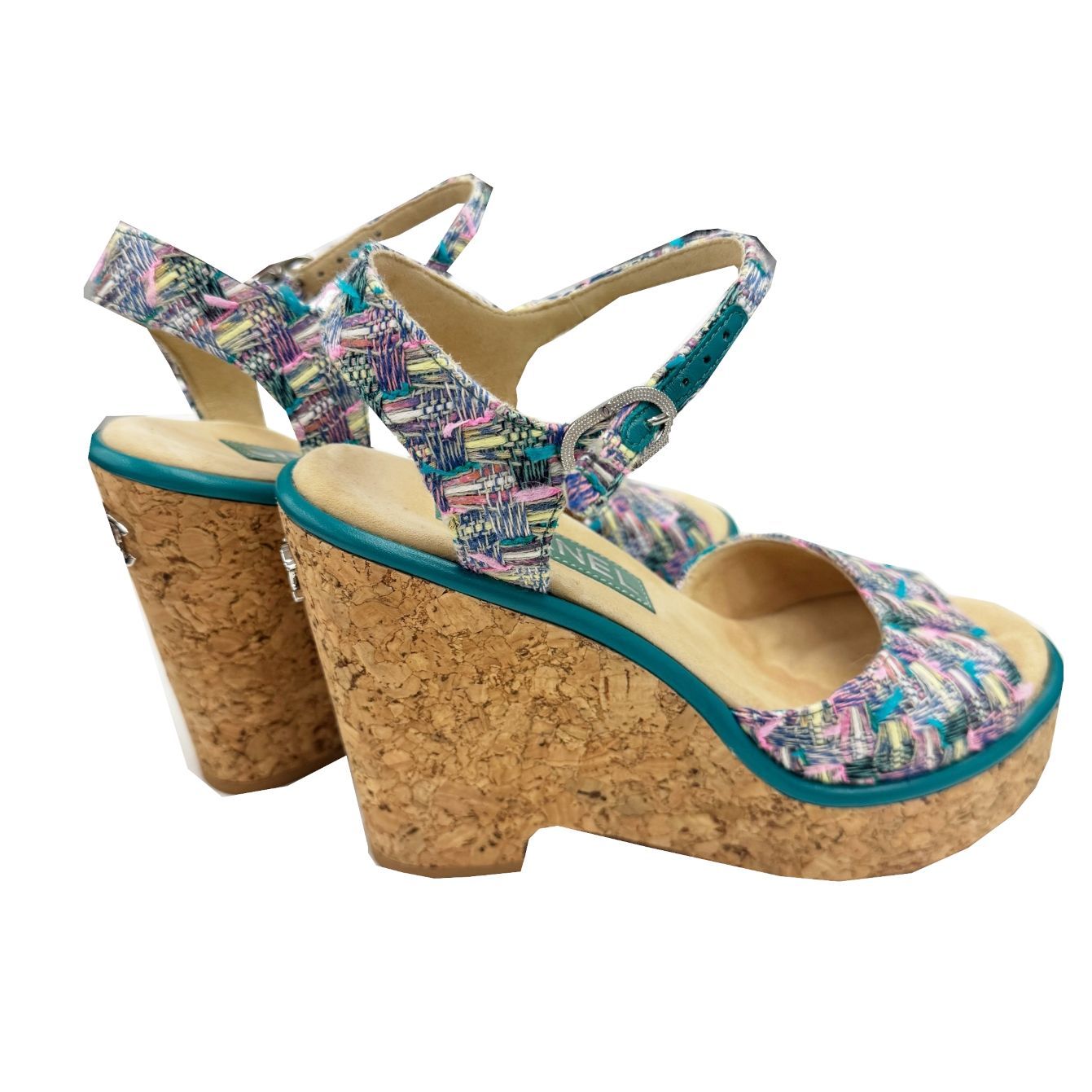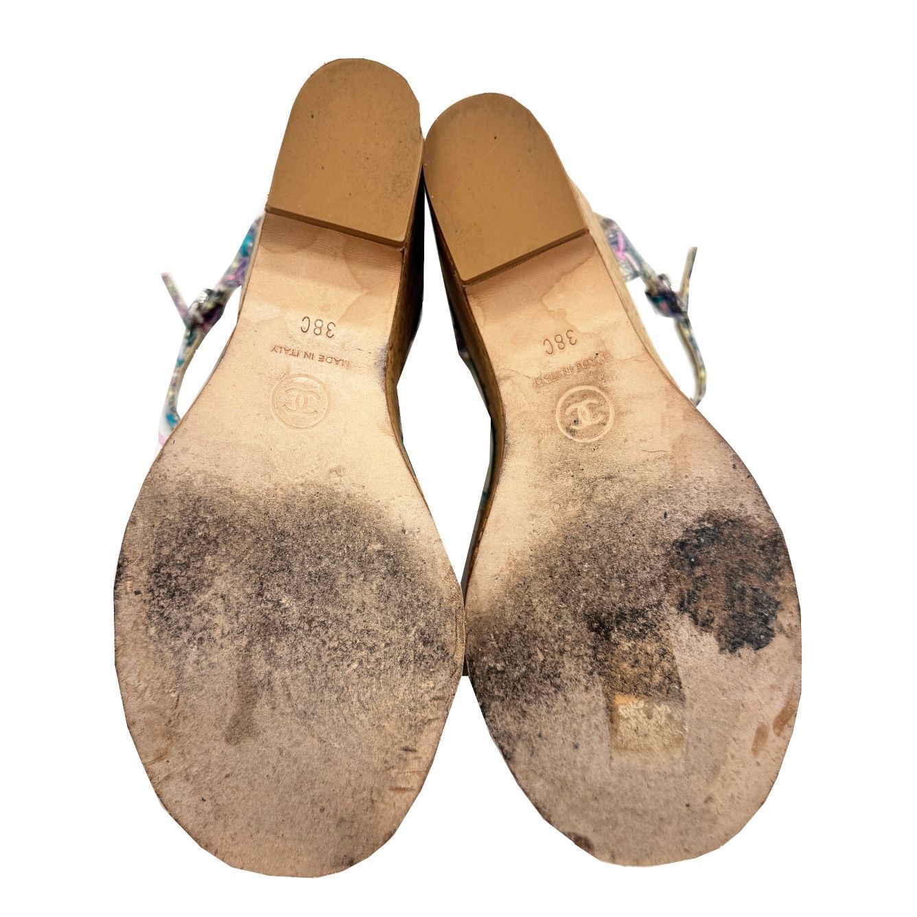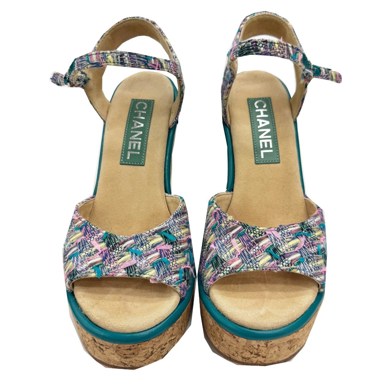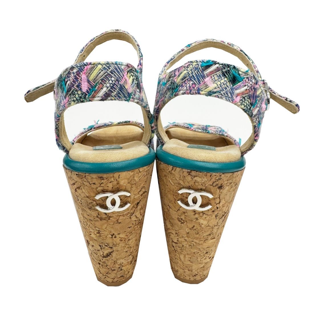 【中古】CHANEL シャネル ウッドサンダル ツイード ウェッジソール 38サイズ マルチカラー G39812 日本サイズ 24~24.5 レディース お洒落 人気