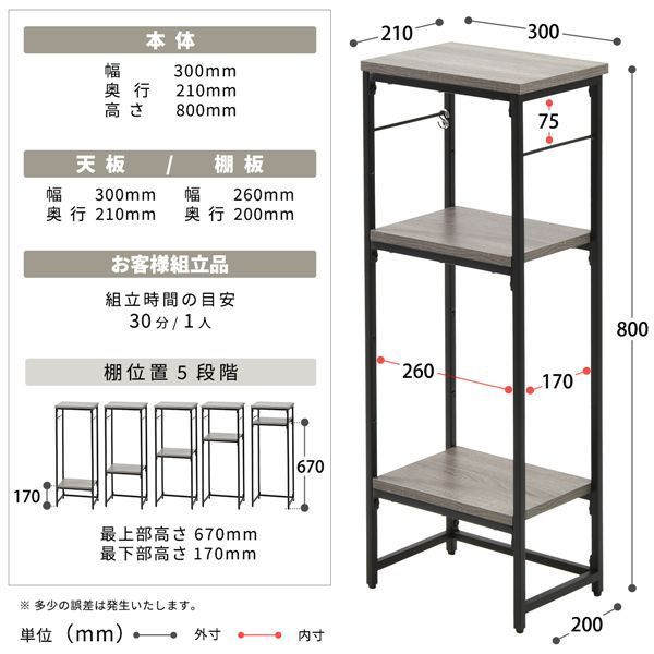 ■商品サイズ(約):W300×D210×H800mm
