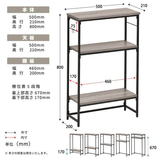 ■耐荷重:天板:約25kg棚板:15kgフック:0.3kg
