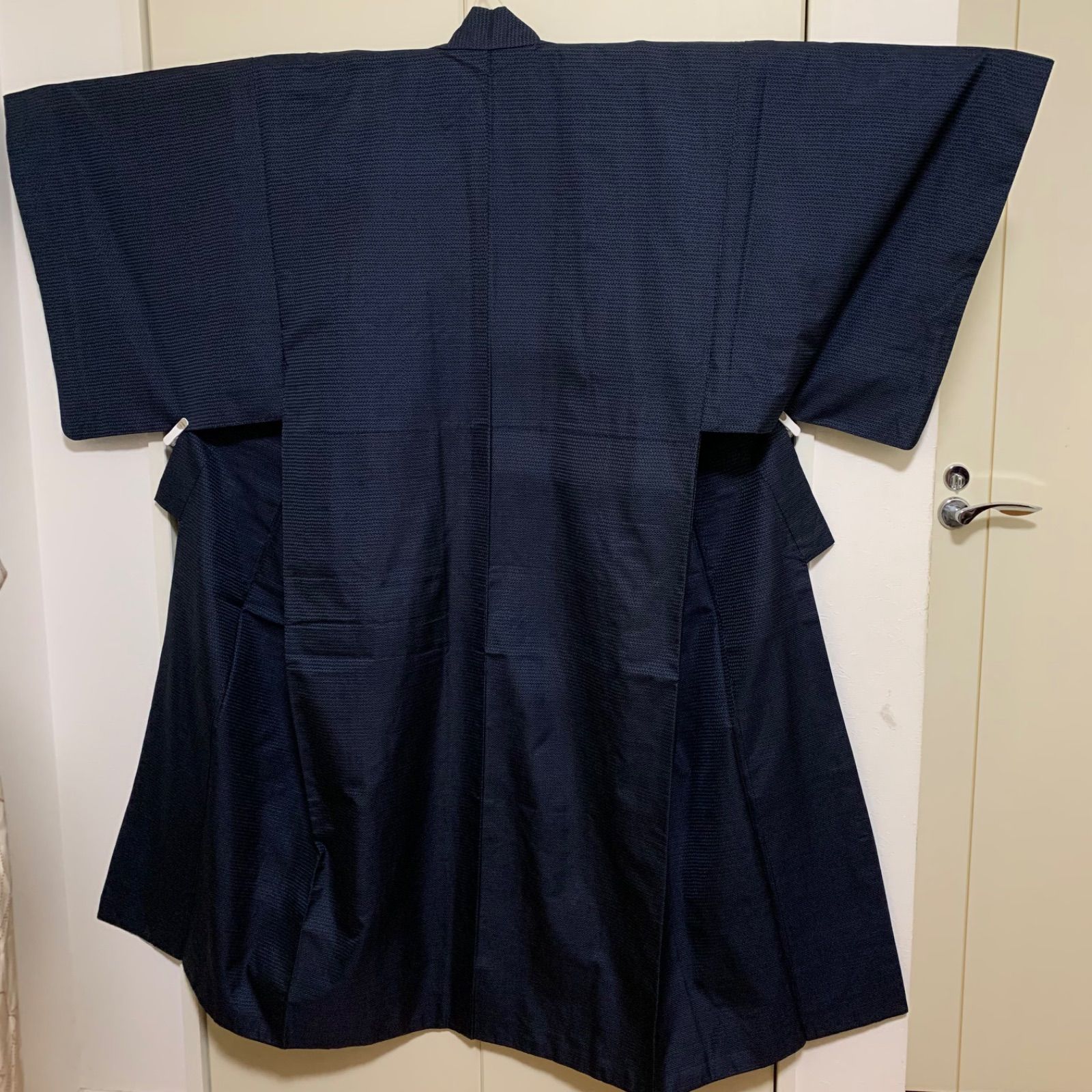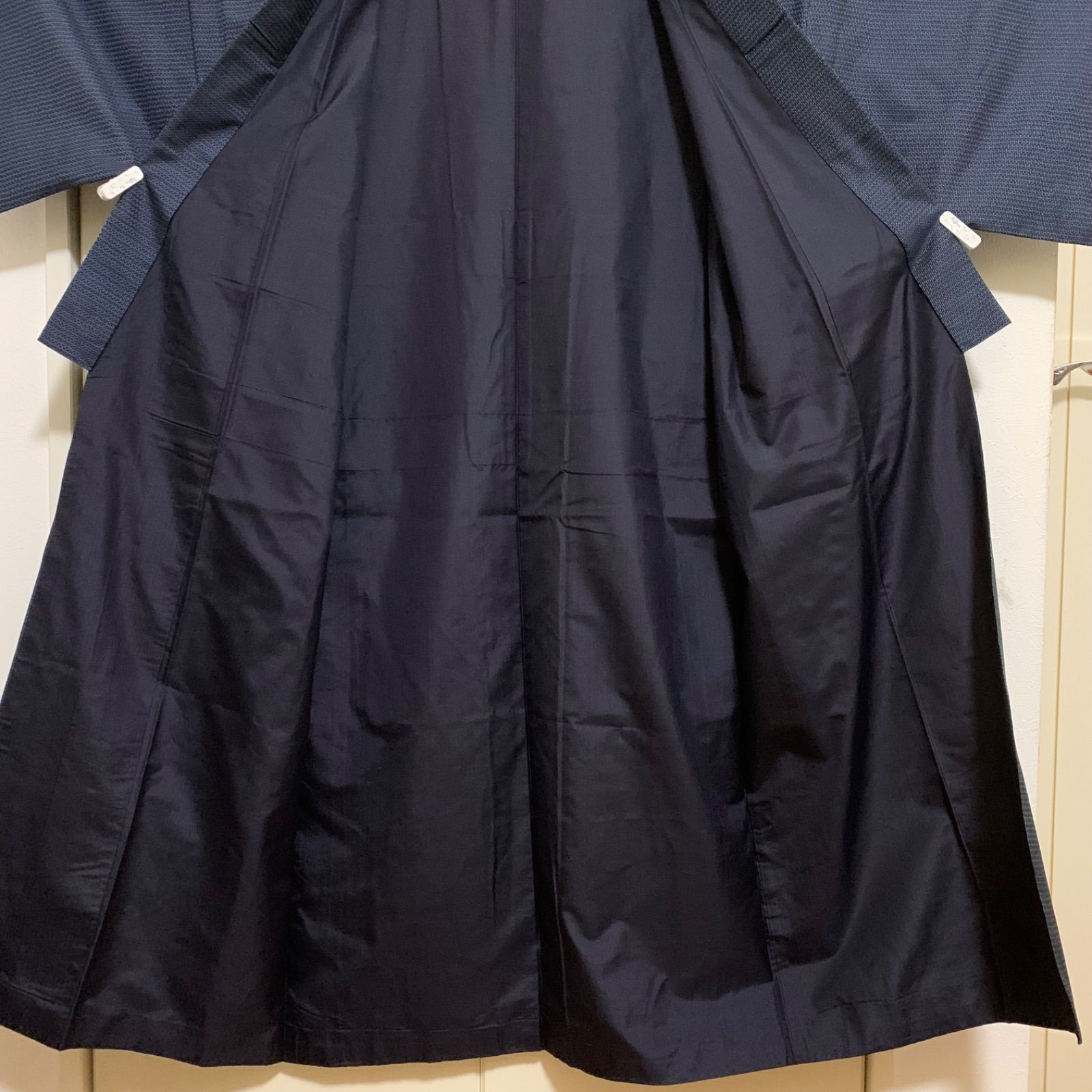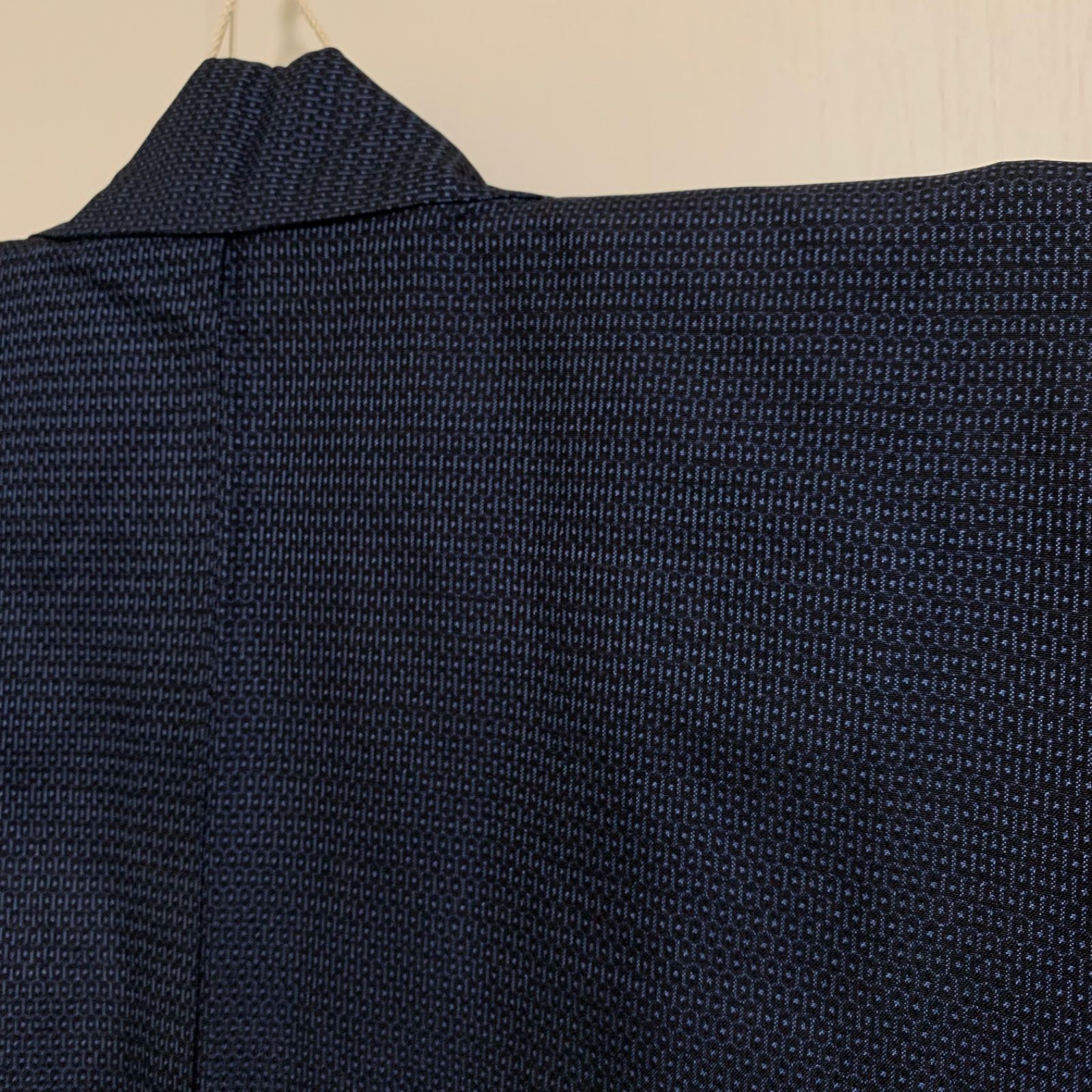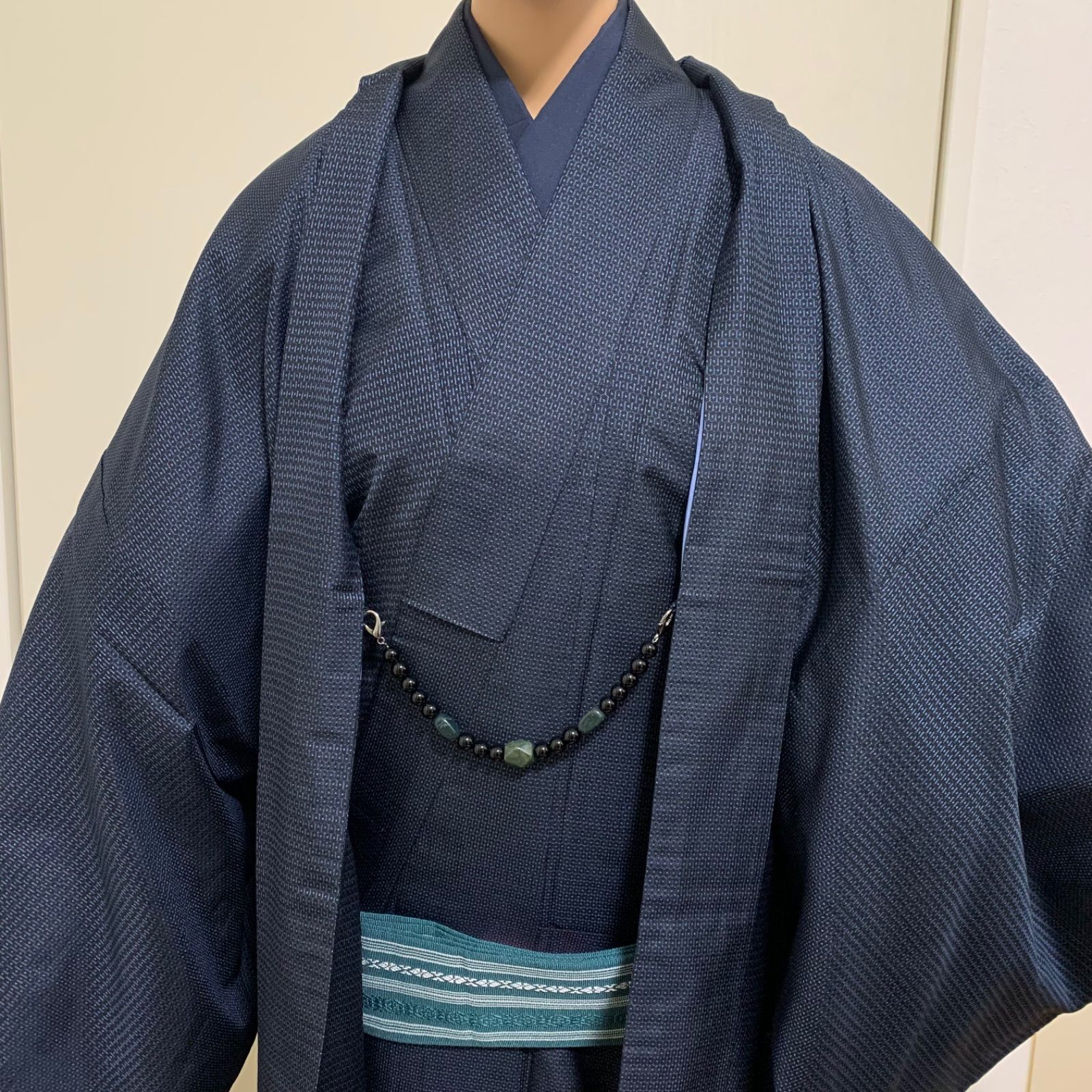 紳士 和装2点セット(①羽織②着物) 紬 青系 男性用 メンズ アンサンブル