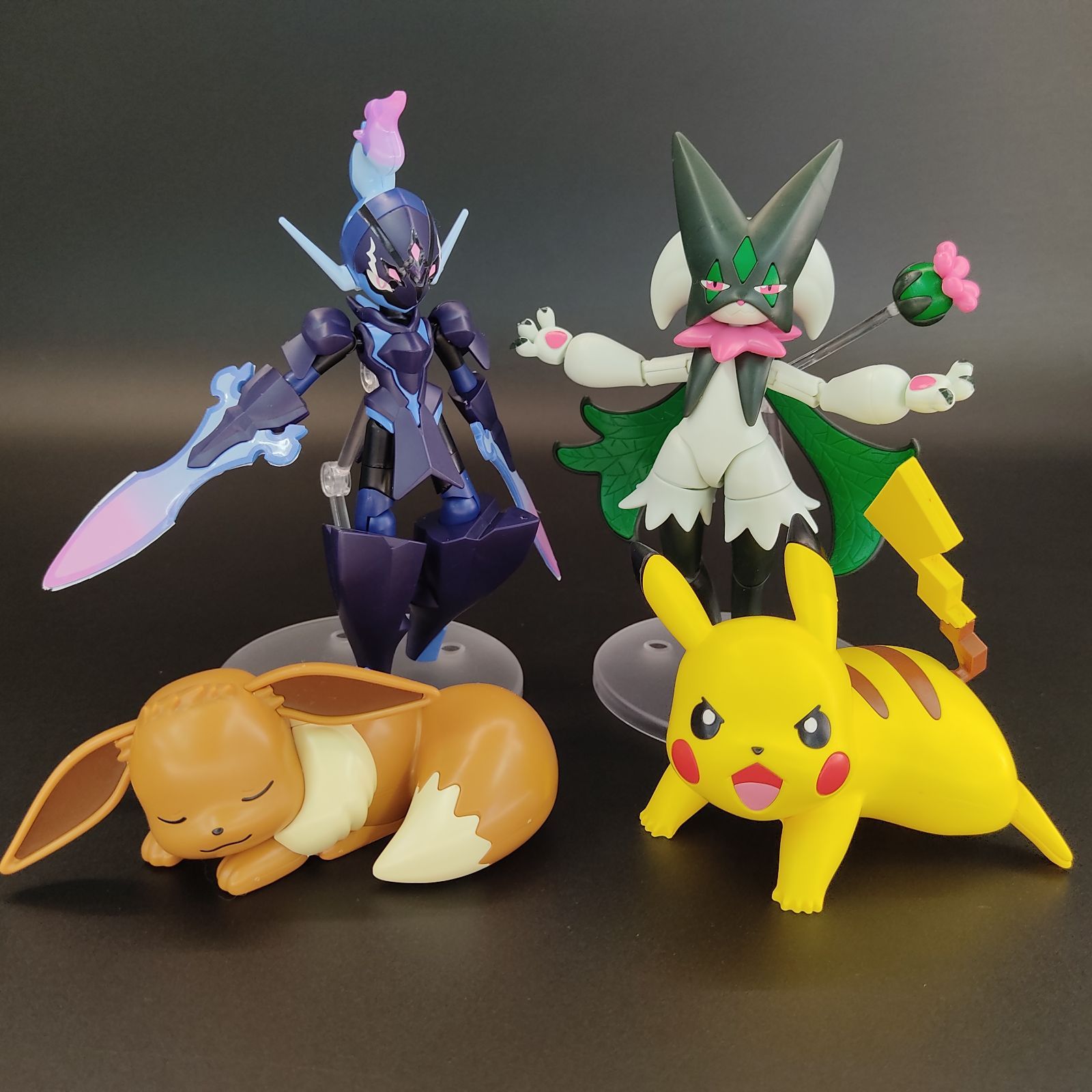 ①「ポケモンプラモコレクション マスカーニャ・ソウブレイズ クイック!!ピカチュウ(バトルポーズ)・イーブイ(おやすみポーズ) 汚れ・ホコリ付着あり」