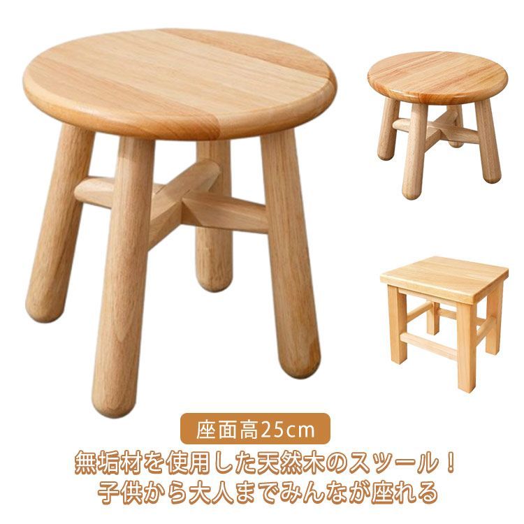 無垢材を使用した天然木のスツール!子供から大人までみんなが座れる