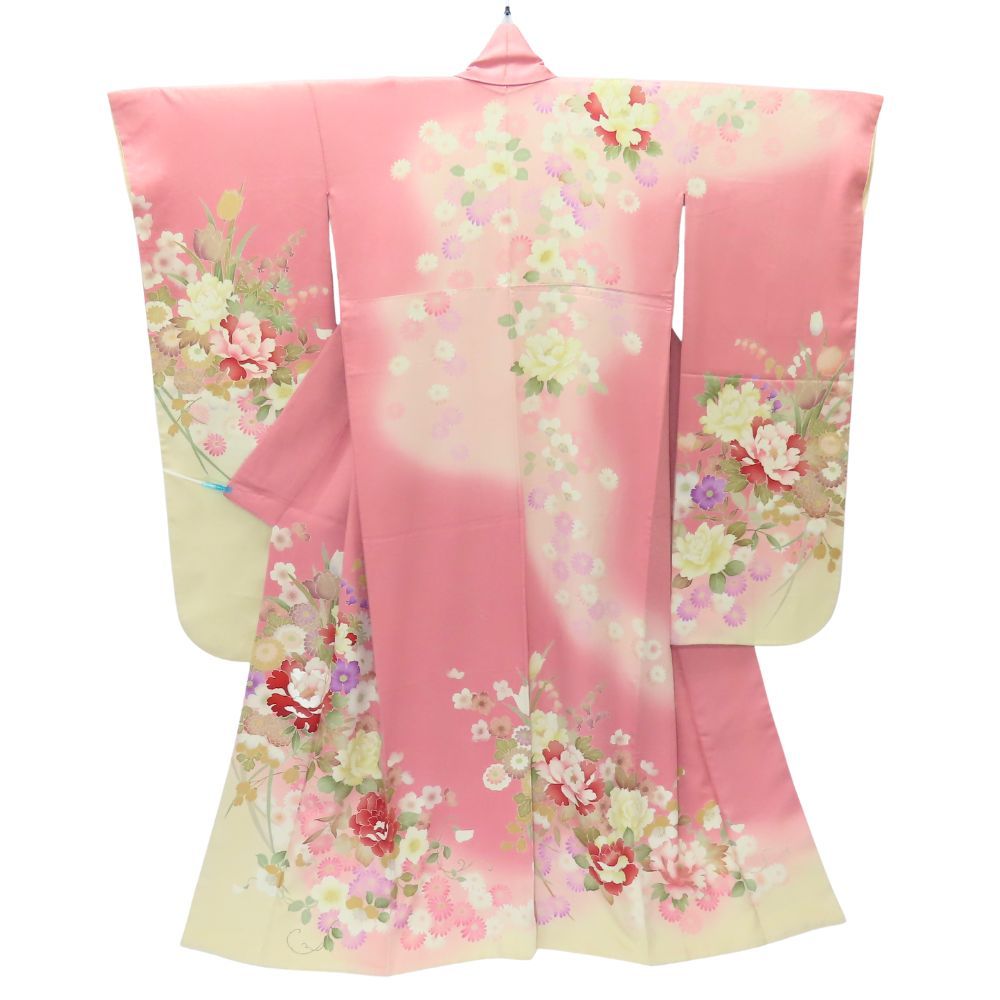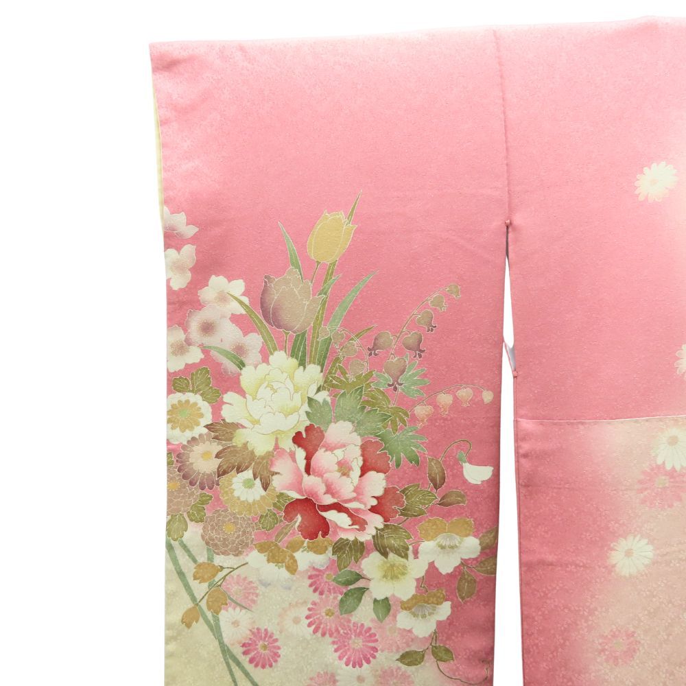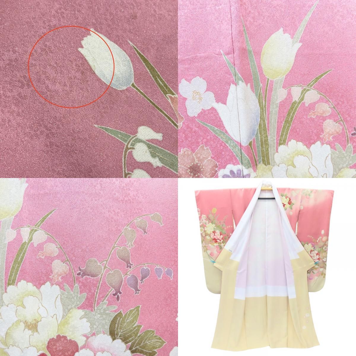 品名:【中古】 振袖 正絹(金銀糸除く) ピンク 成人式 チューリップ スズラン レディース 女性