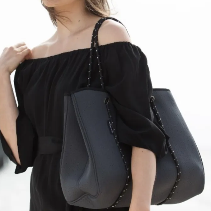 高品質のネオプレンで作られたトートバッグ。洗えるだけでなく、軽量で機能的でデイリー使いのバッグにぴったりのトートバッグになります。