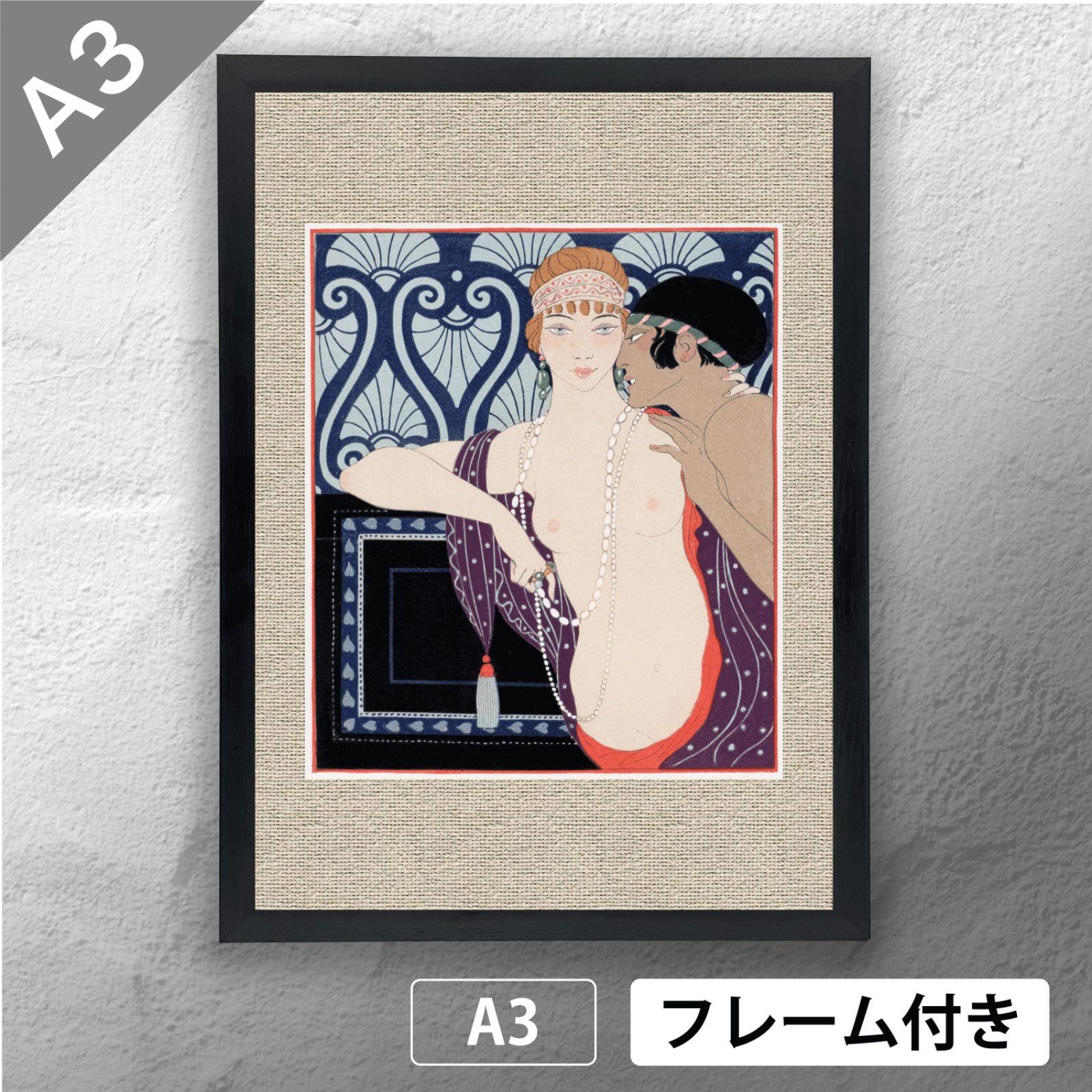 ジョルジュ・バルビエ(George Barbier) 「 Les Trois Beautes de Mnasidika 」 アール・デコ アートポスター A3 マット その86 【フレーム付】《IN》