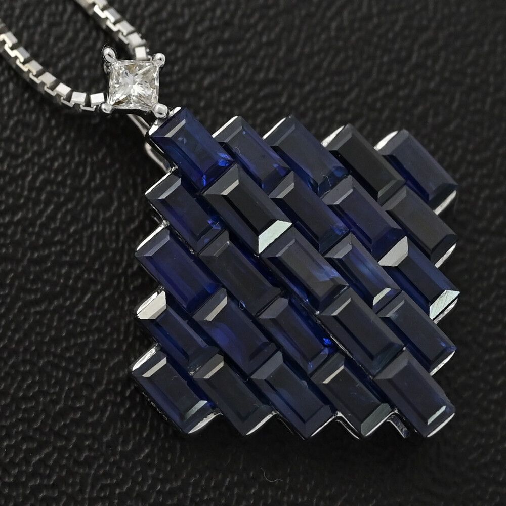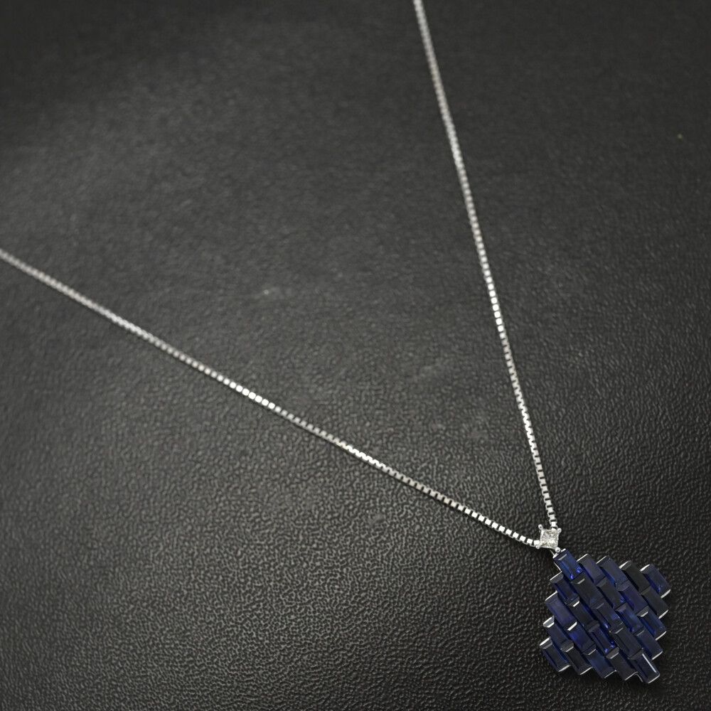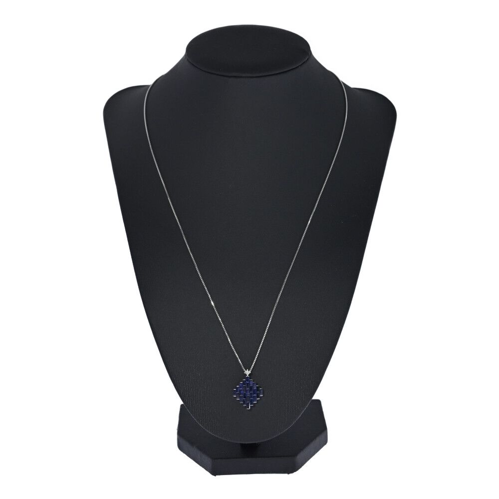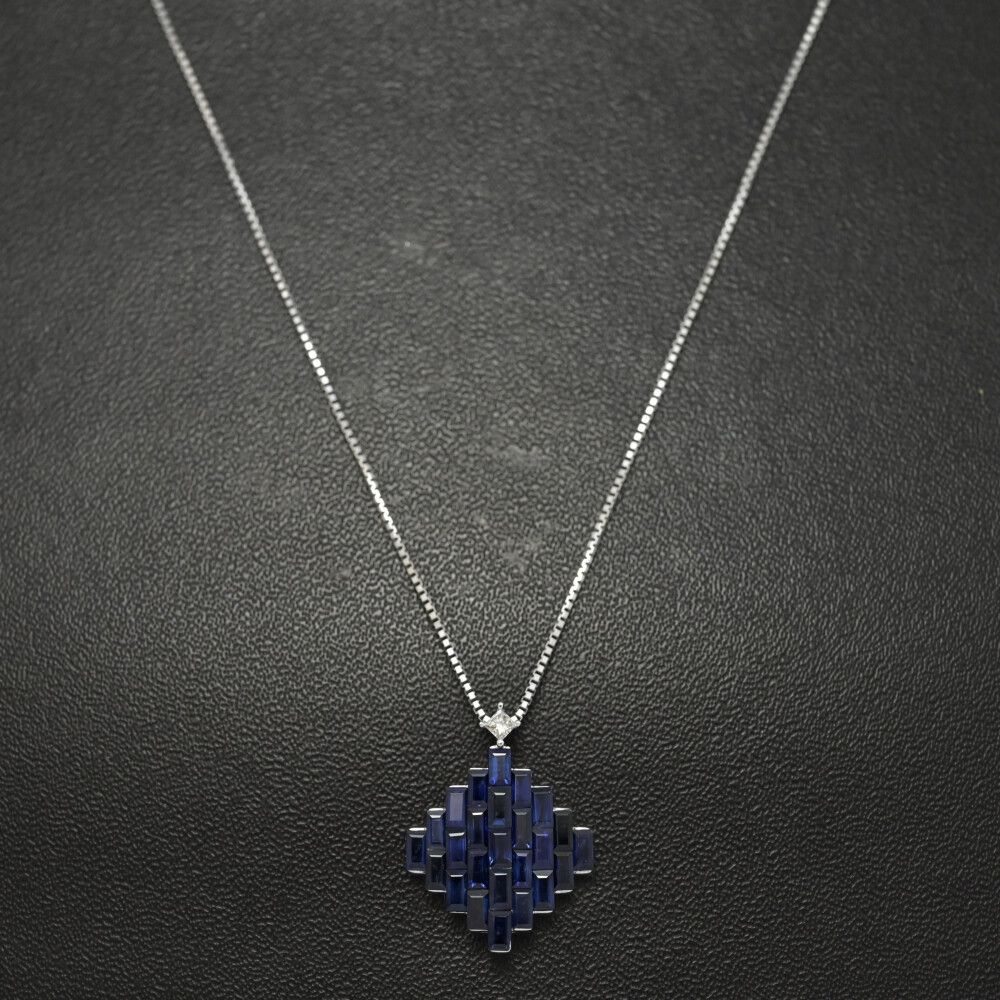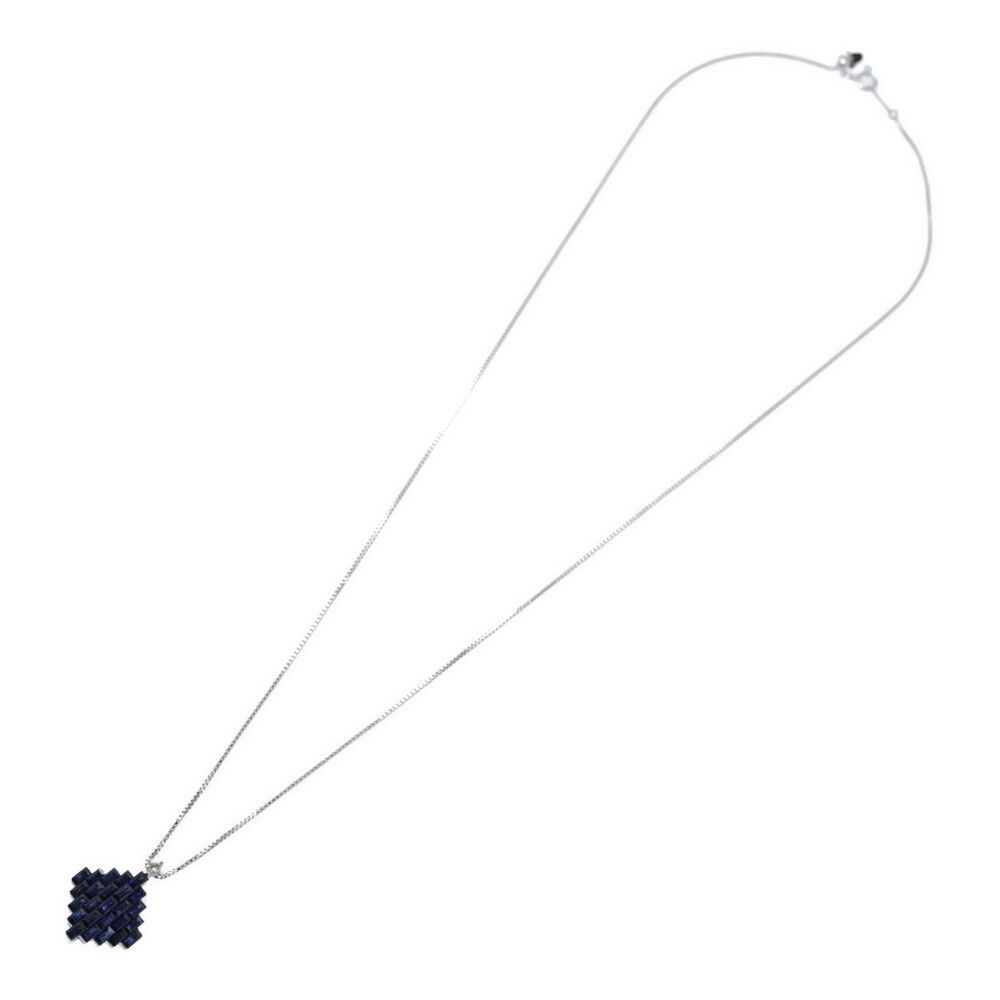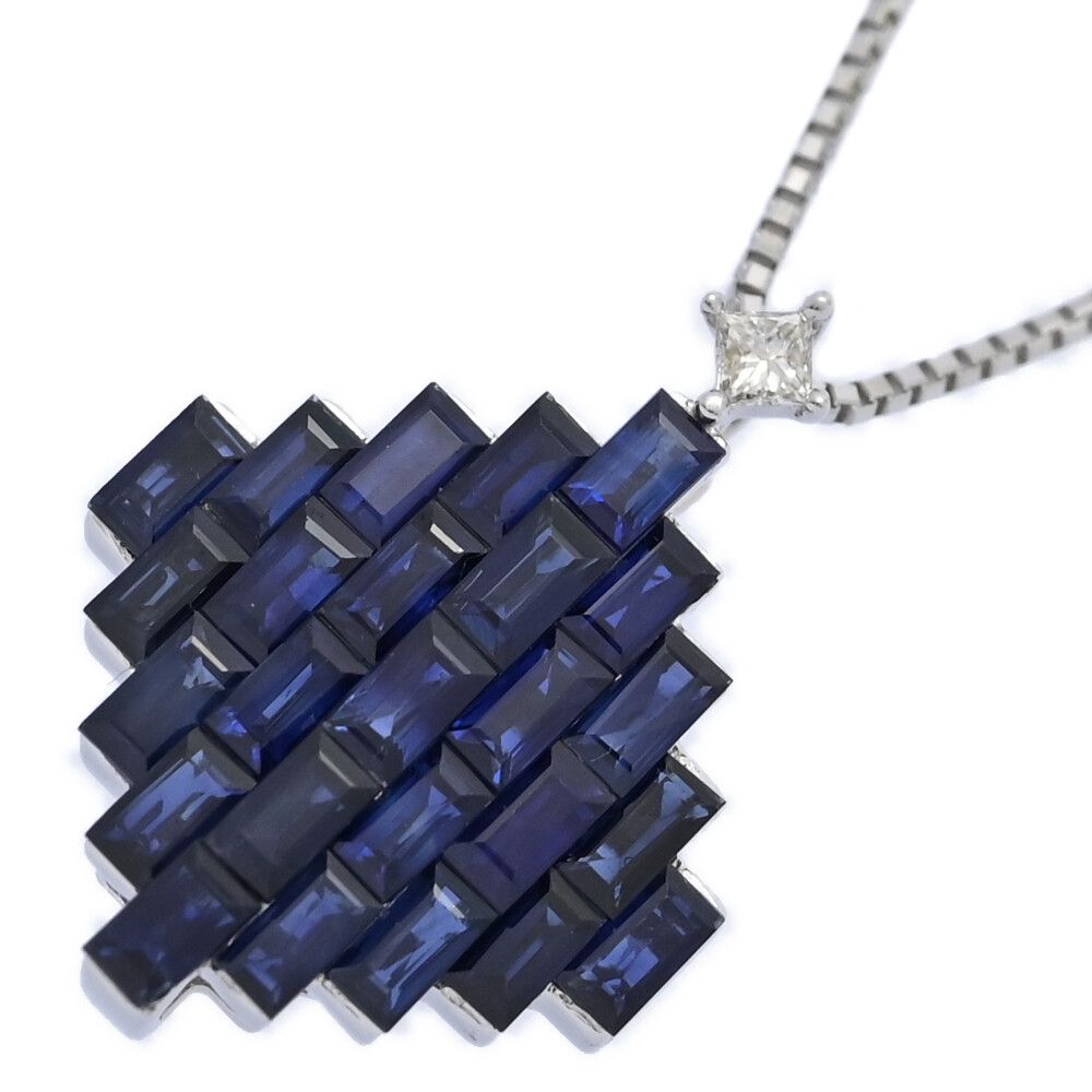 FD:0.04ct/ひし形モチーフ サファイア・ダイヤモンド ネックレス・ペンダント/K18WG/750-5.5g/ホワイトゴールド/プレゼント【♀】【S】【レディース】/h251212★■598045【中古】