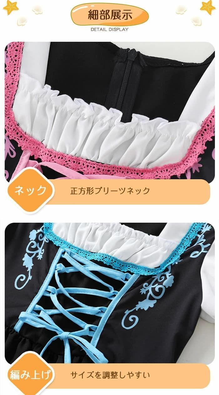 ◆ビール祭りや農場、牧場、荘園などのテーマにもマッチし、演出服としても最適です。プレゼントにも喜ばれるこのメイドコスチュームで、特別な日の思い出をさらに華やかに彩りましょう。