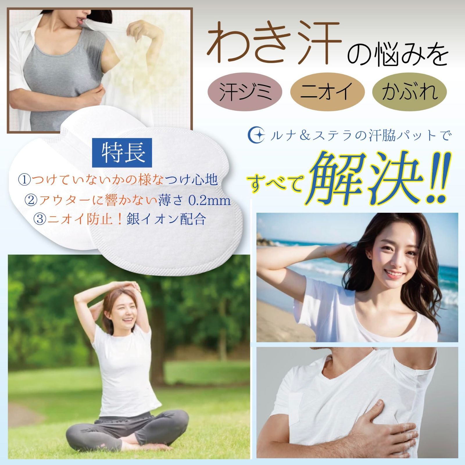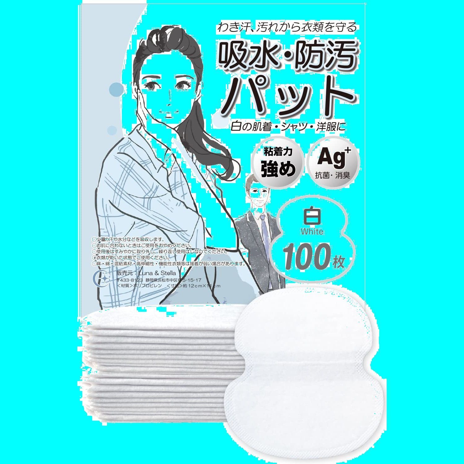 Luna & Stella あせわきパッド (汗わきパット) 100枚セット 白 汗多め用 強粘着 男女兼用 無香料 お徳用 あせジミ防止 ワキ汗 抗菌 消臭 防臭シート