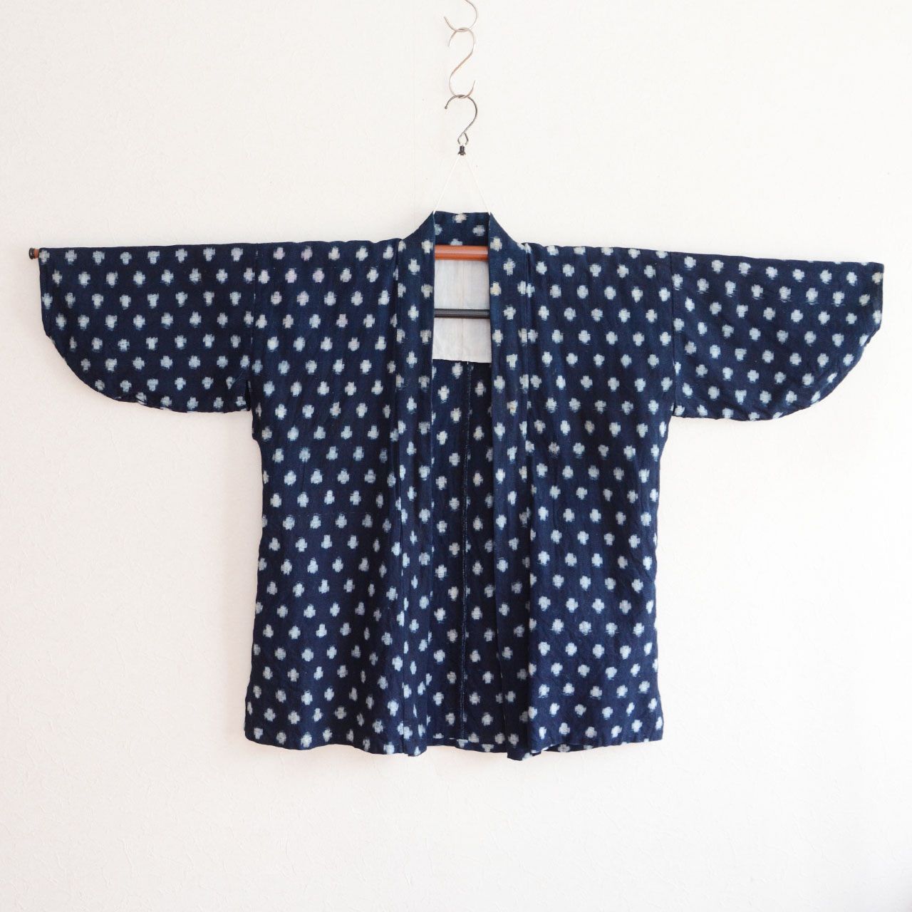 深い藍に白い絣が美しく浮かび上がり、古布ならではの柔らかな質感と自然な色落ちが魅力です。