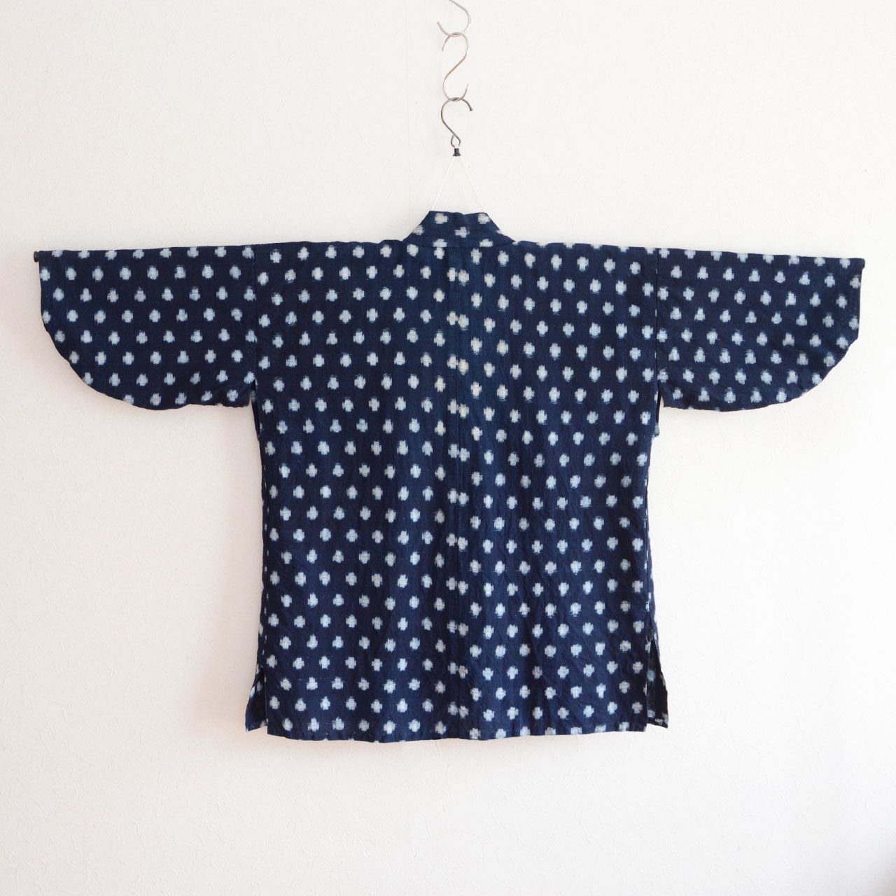 昭和中期頃に仕立てられた、ぼた雪を思わせる雪ん子絣が際立つ藍染の野良着です。