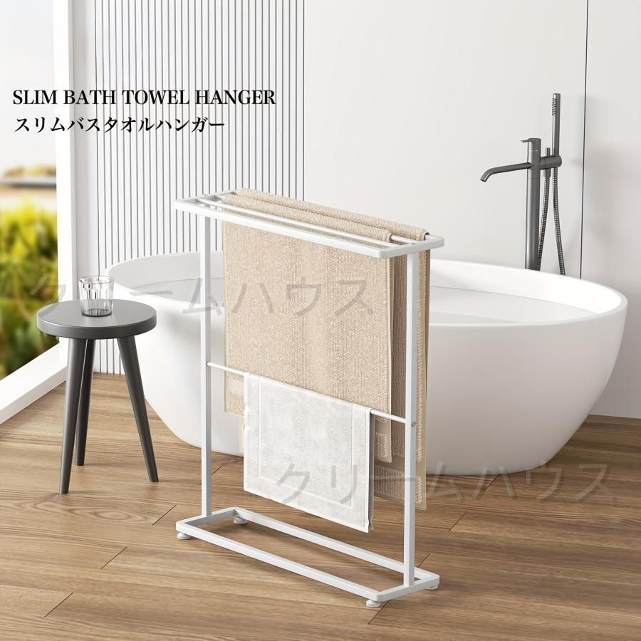 【新品・未使用】バスタオル掛け バスタオルハンガー 掛けやすい 大判サイズも干せる 薄型 タオルラック ふきん掛け ランドリーワゴン バスタオルスタンド 置き型