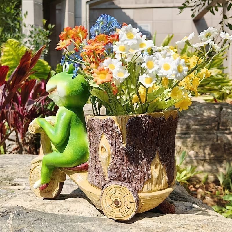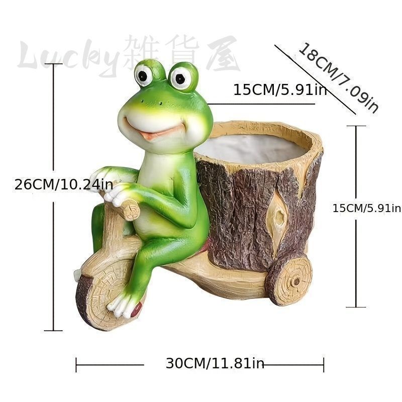 自転車をこいでいる可愛いカエルの鉢植えは、あなたのガーデニングを一層楽しく彩ります!ユニークなデザインのプランターは、玄関やリビング、ダイニング、さらにはバルコニーにぴったり。多肉植物やサボテンを植えることで、どんな場所でも生命感あふれる空間に変えてくれます。また、樹脂製なので耐久性も優れ、室内外問わず安心してお使いいただけます。