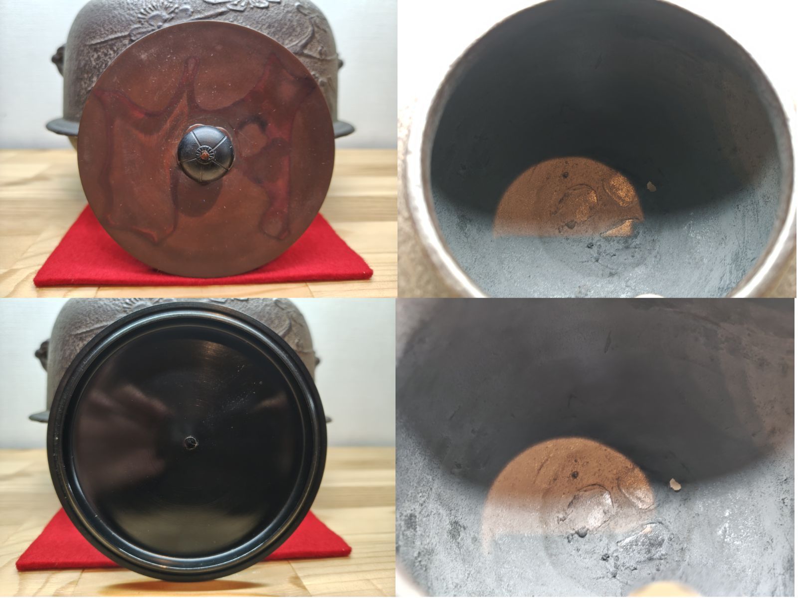 釜の内側も目立った錆などは無く、錆止めも残っていますので、十分綺麗ですぐに修繕に出される必要はありません。