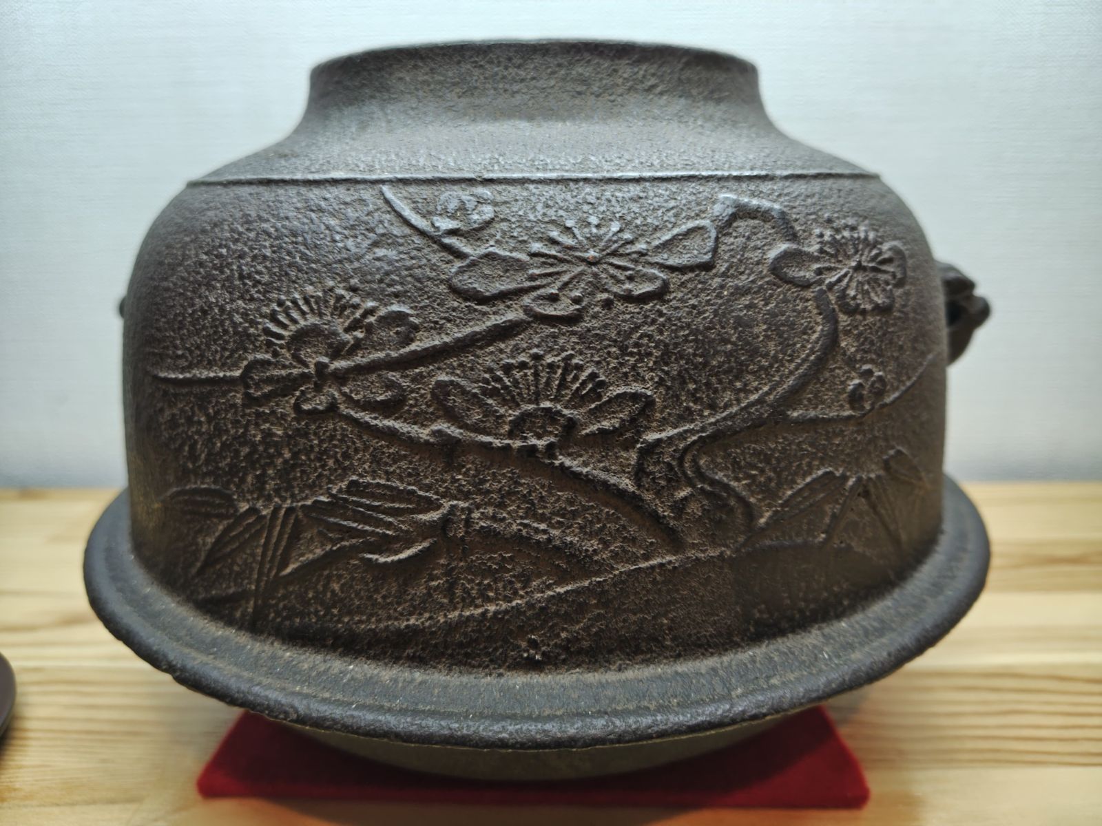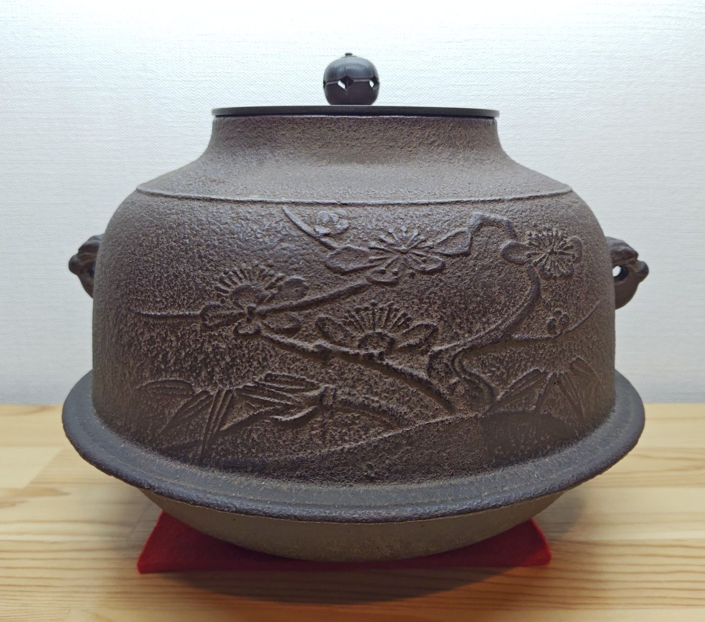 共箱に経年による変色などがありますが、真形釜本体はそういった状態ですので、普段のお稽古などでも十分にお使い頂けます。