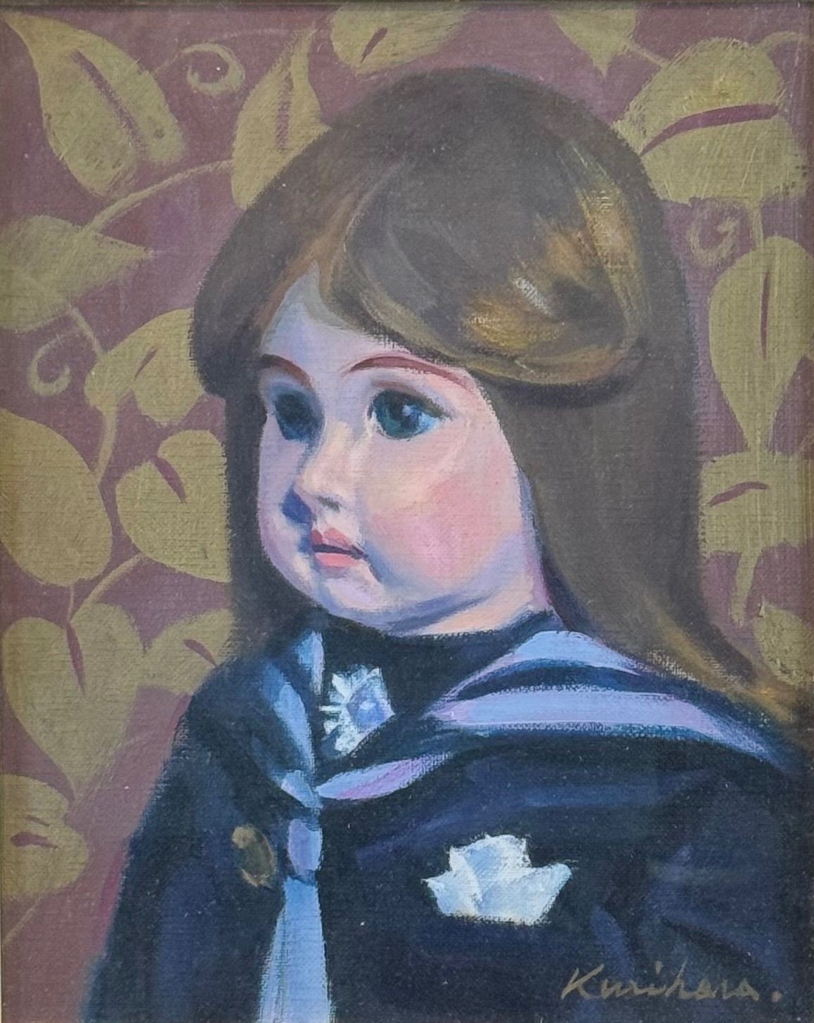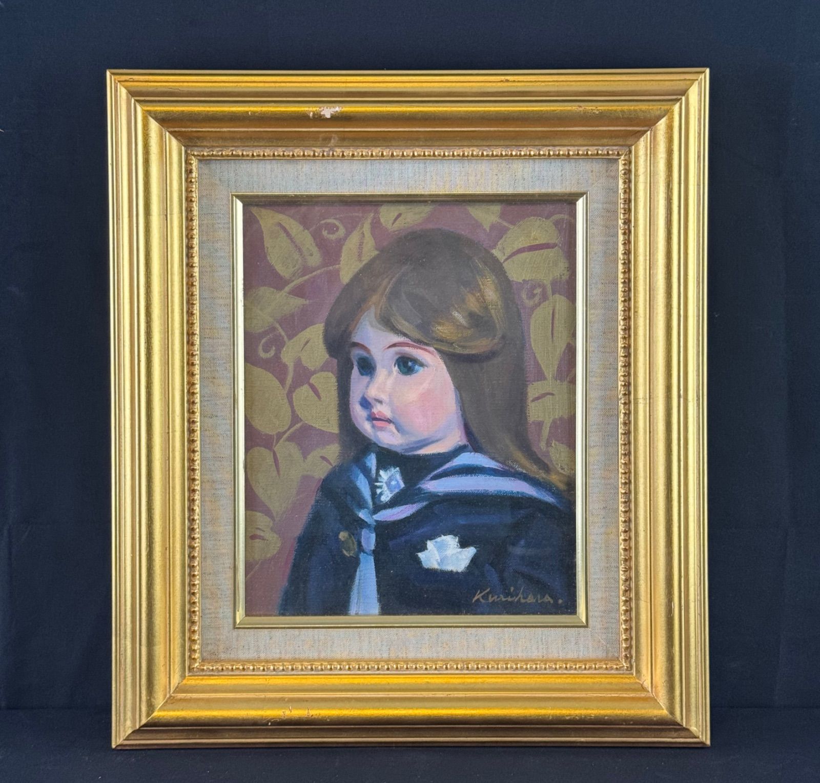 作者不詳「フランス人形」油彩 5号 少女 額装