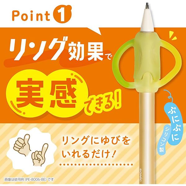 リング効果で実感!グリップについたリングにゆびをいれるだけで、自然にペンがただしくにぎれる「ポジットペンシル」!