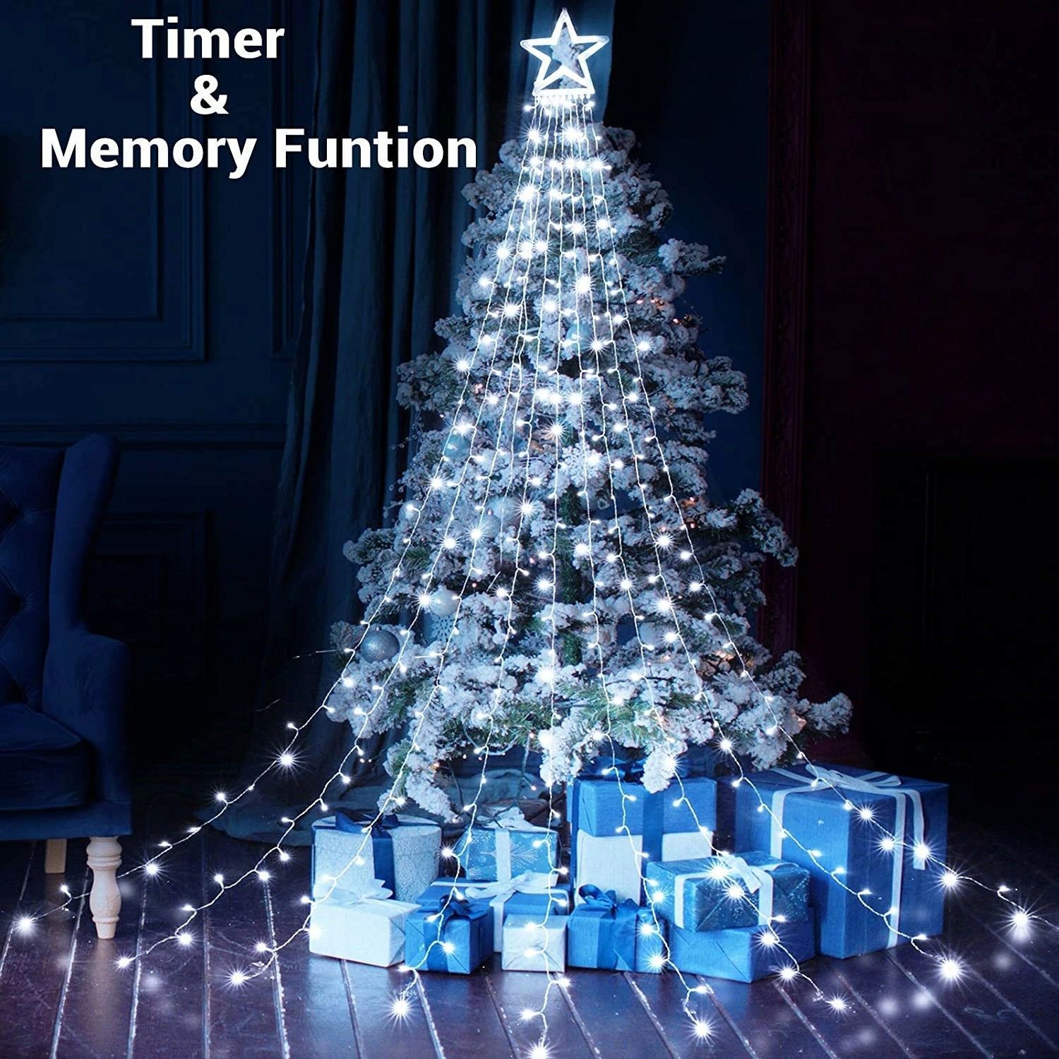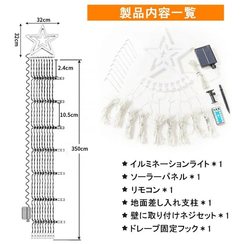 【ドレープ部分9本】イルミネーションは嬉しい9本。星型モチーフからのイルミネーションもしっかりとボリュームを持たせるため8本となっています。