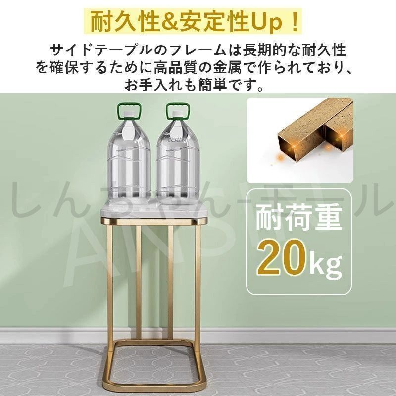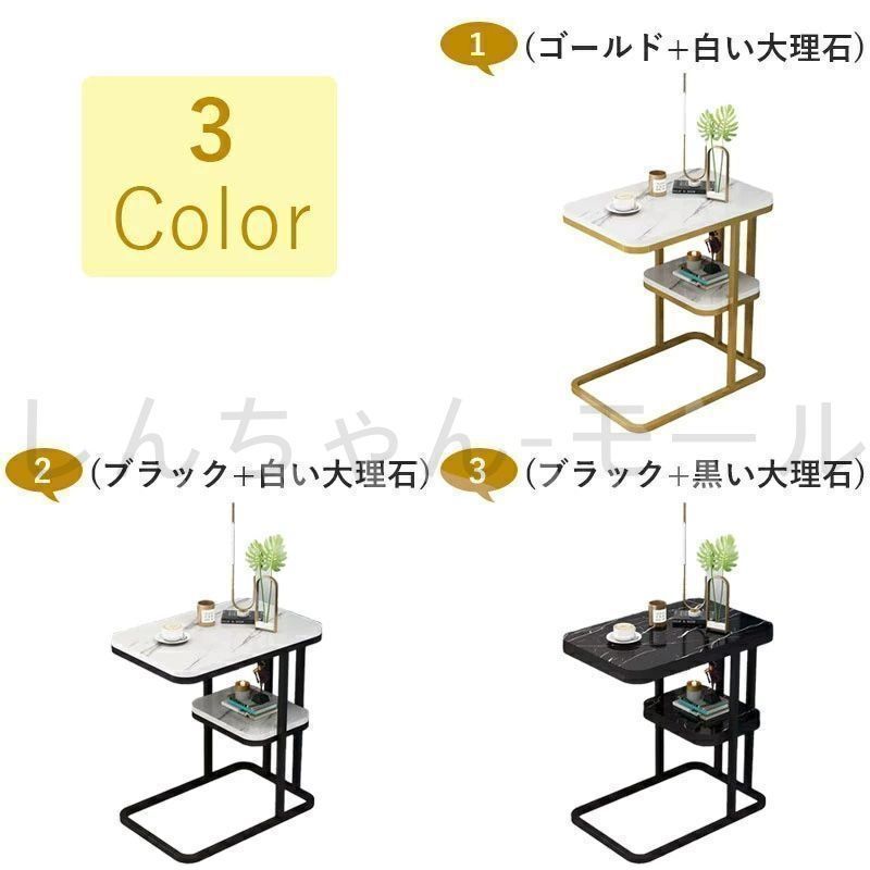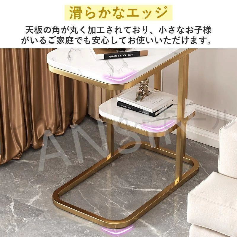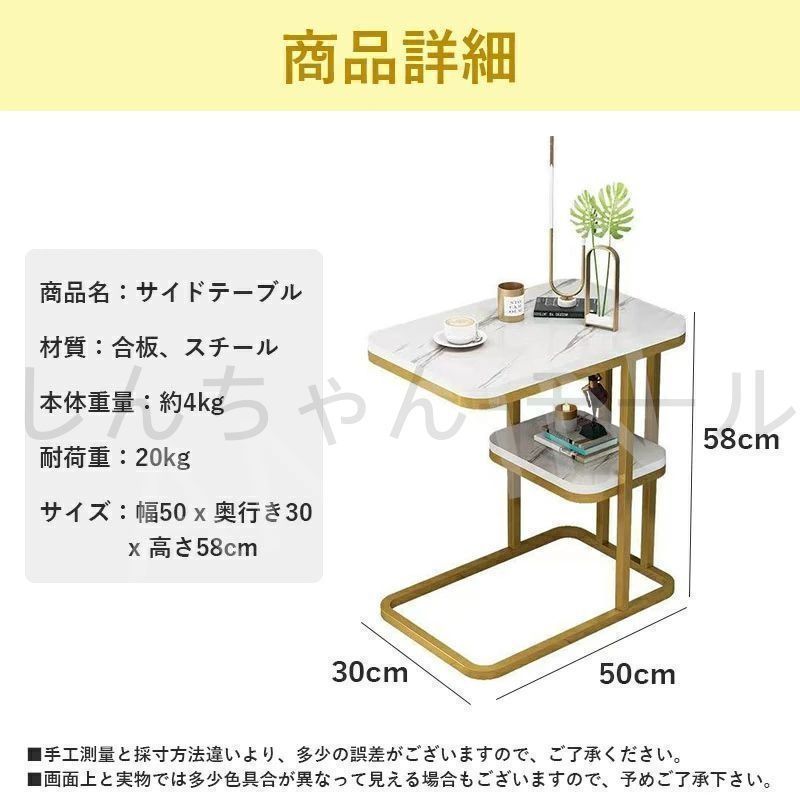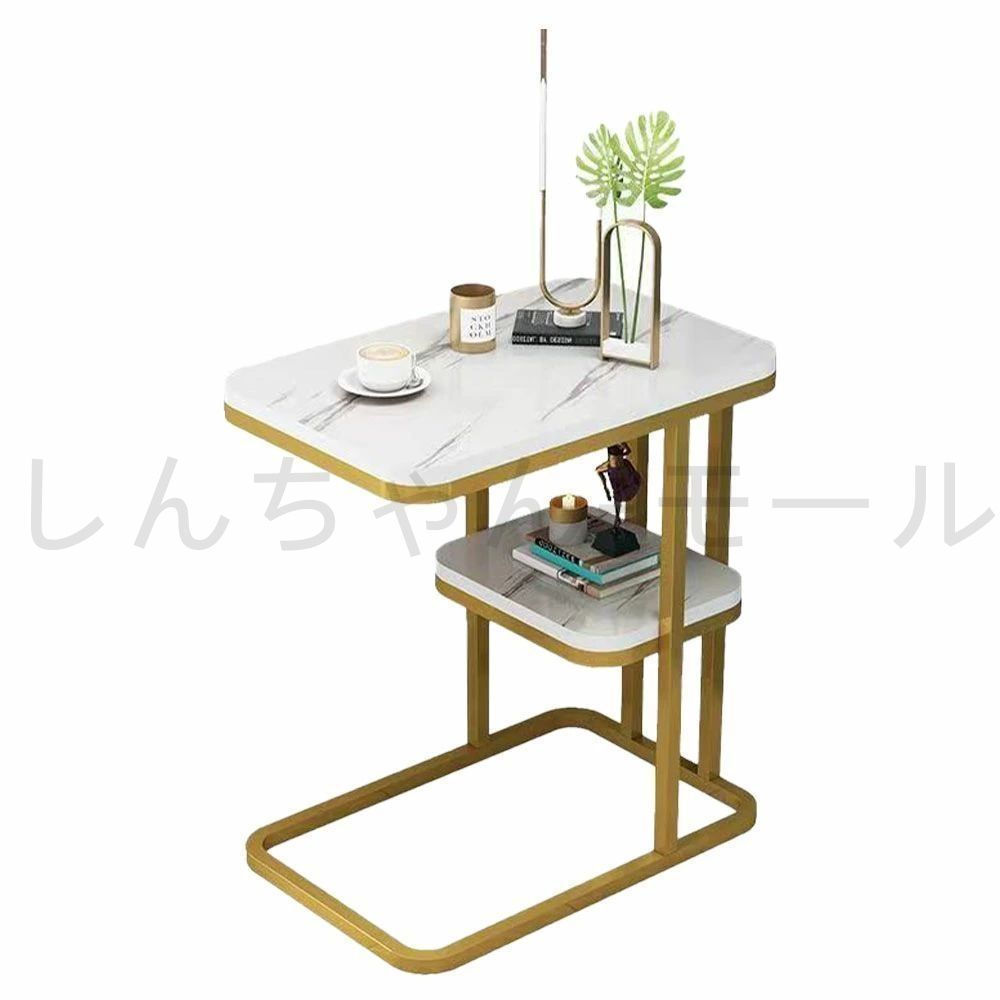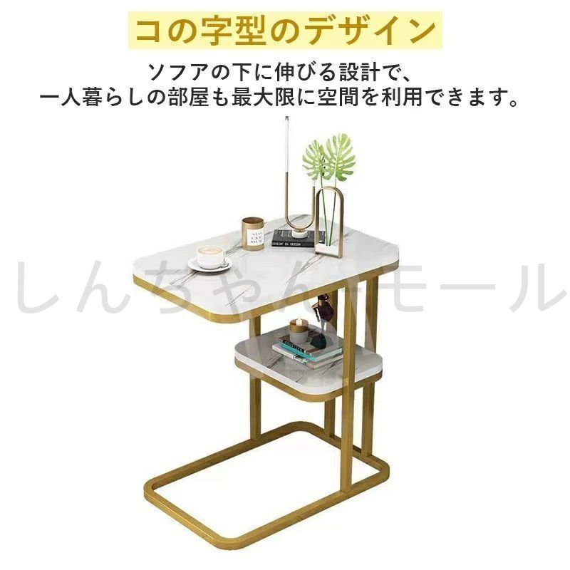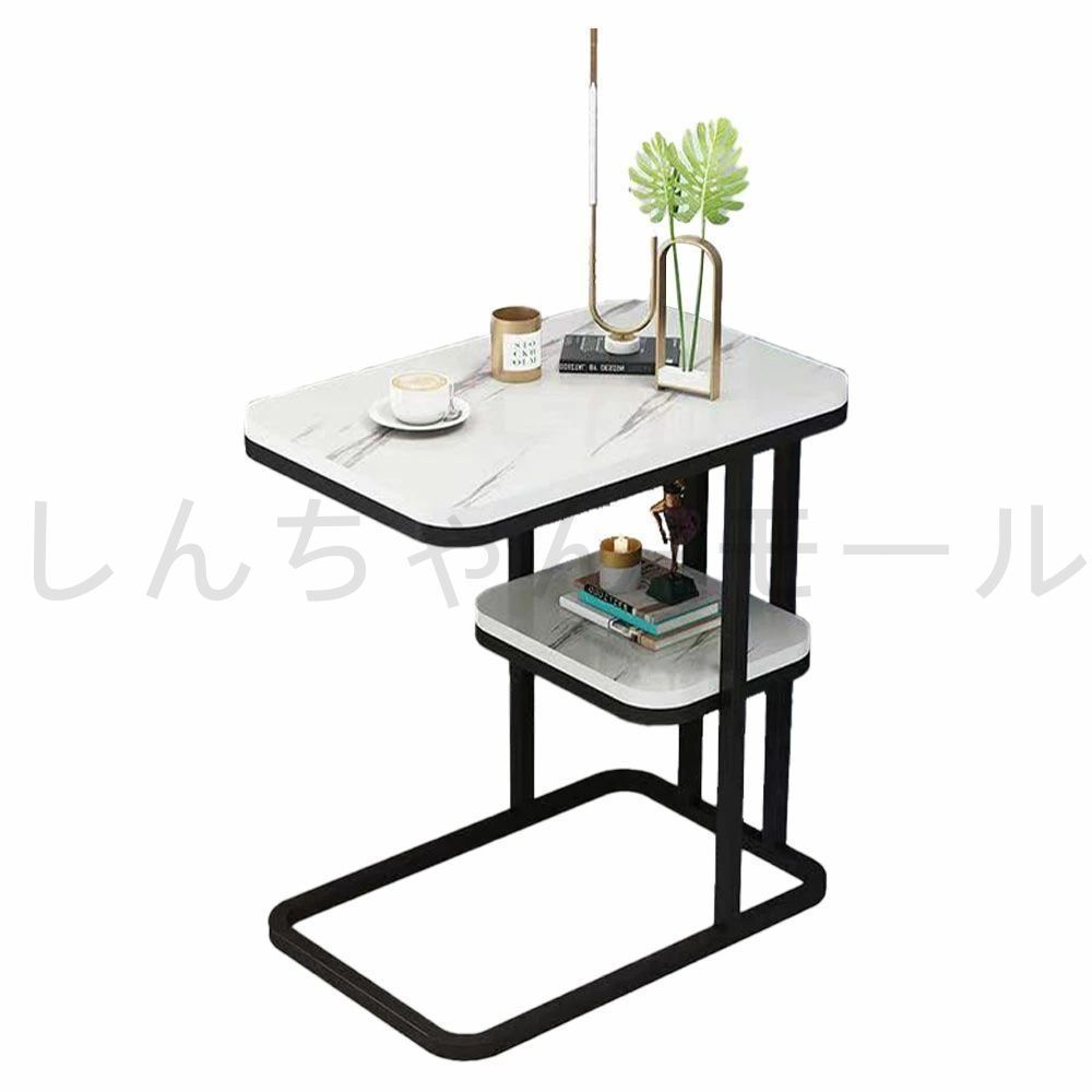サイドテーブル ナイトテーブル ベッドサイドテーブル おしゃれ 大理石 2段収納 テーブル 北欧風 コの字型 幅50cm スリム 省スペ