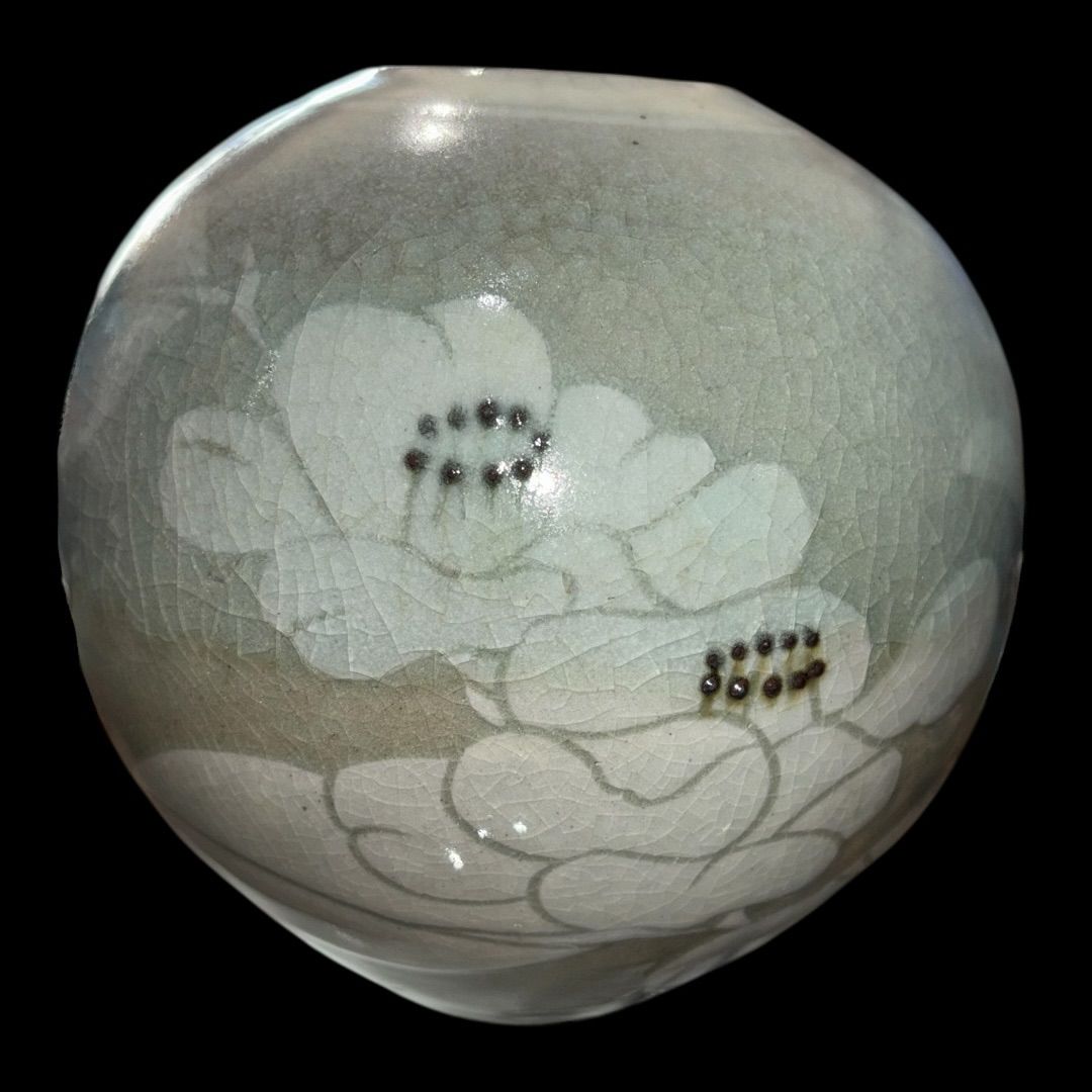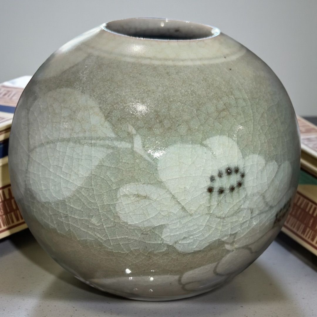 作家物 インテリア 大輪 白釉 花瓶 フラワーベース アンティーク 骨董