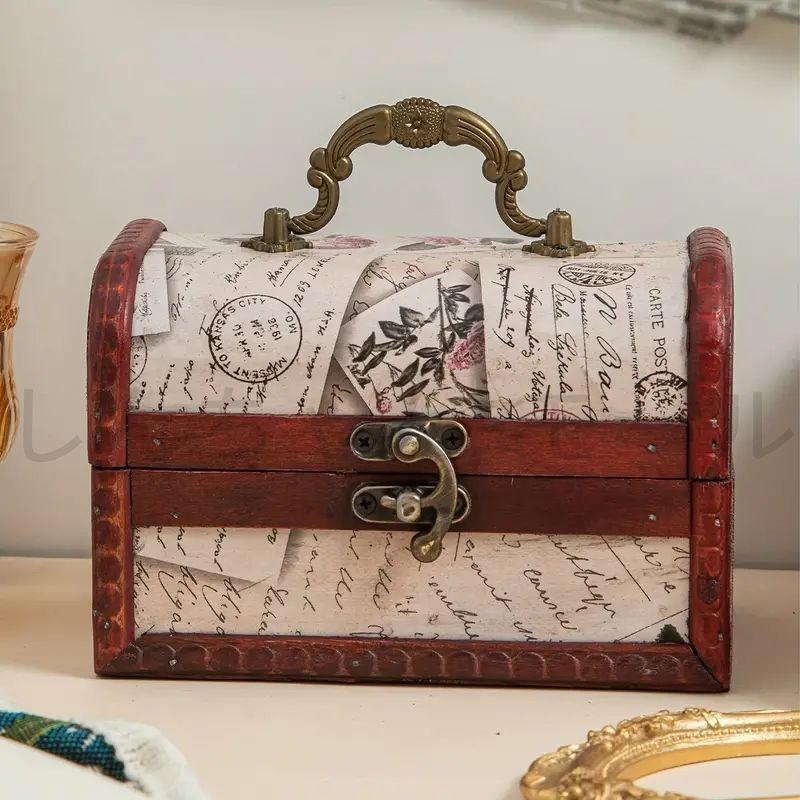 このヴィンテージ風の宝箱ジュエリーボックスは、手紙モチーフのデザインが特徴です。サイズは15cmの長さ、10cmの幅、高さも10cmで、小物やアクセサリーを収納するのにぴったりのサイズです。頑丈な木材で作られており、アンティーク調の金具がクラシックな雰囲気を演出します。お部屋の装飾としてもおしゃれで、贈り物にも最適です。時代を感じさせるデザインと機能性を兼ね備えたこのジュエリーボックスは、あなたの大切なアイテムを美しく保管します。
