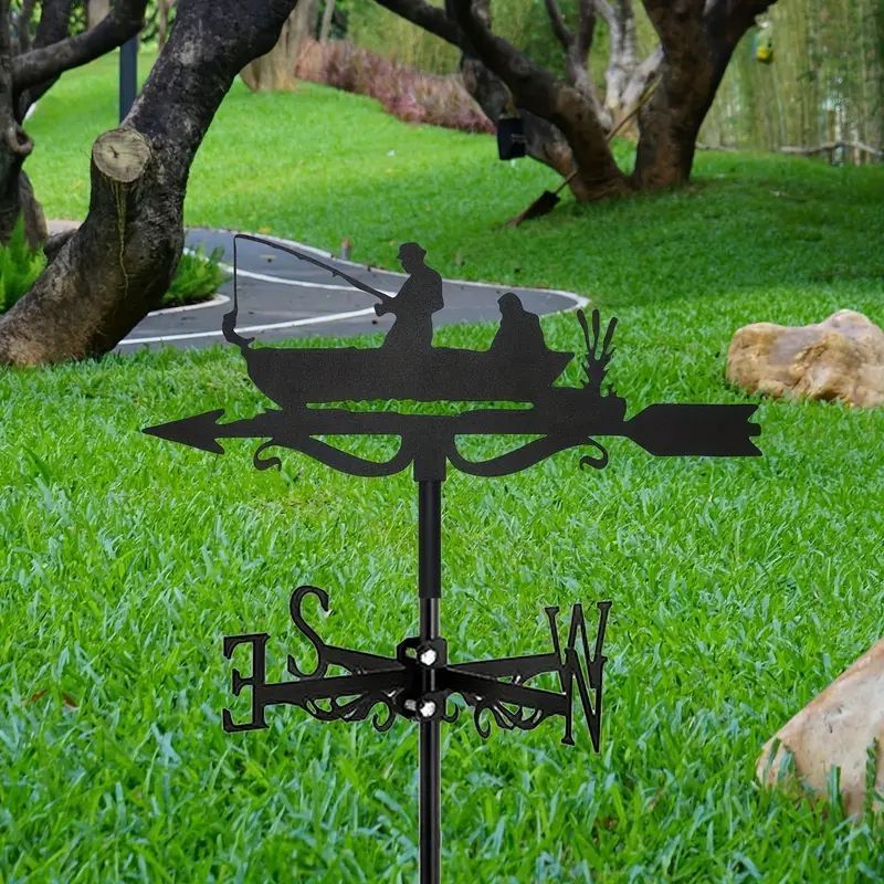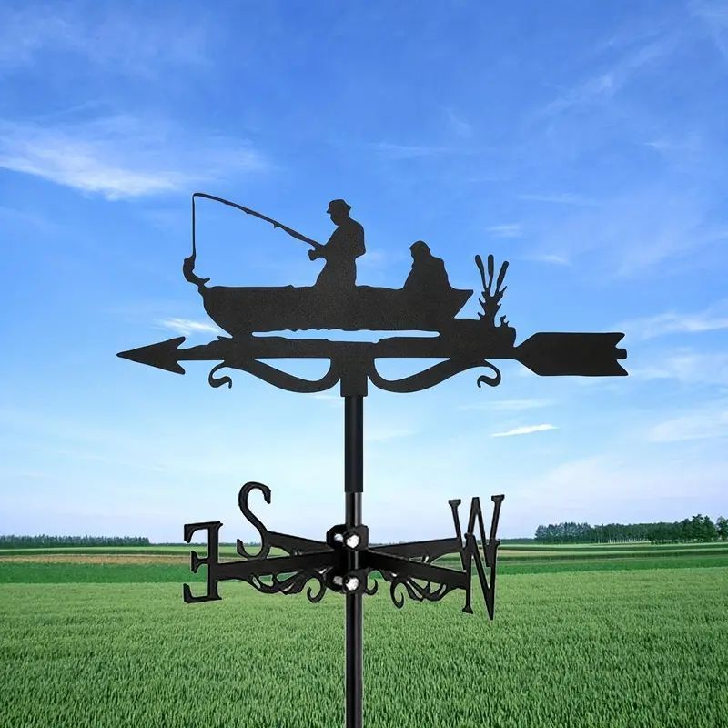 フィッシャーマンウェザーベインレクリエーションボート釣り風見鶏ガーデン天気計屋根マウント風向インジケーター金属クリエイティブ釣り愛好家金属風見鶏農場庭の家の装飾飾り bj52