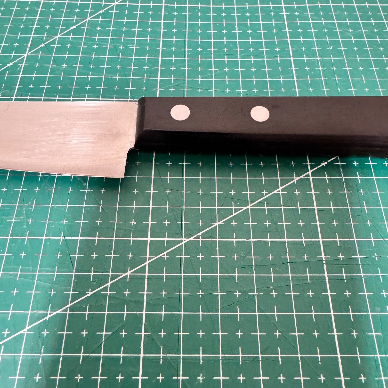 * **コンディション:** 刃に少々の錆やスレが見られますが、目立つ刃こぼれはありません。ご購入後、必要に応じて**研ぎ直し**を行ってください。