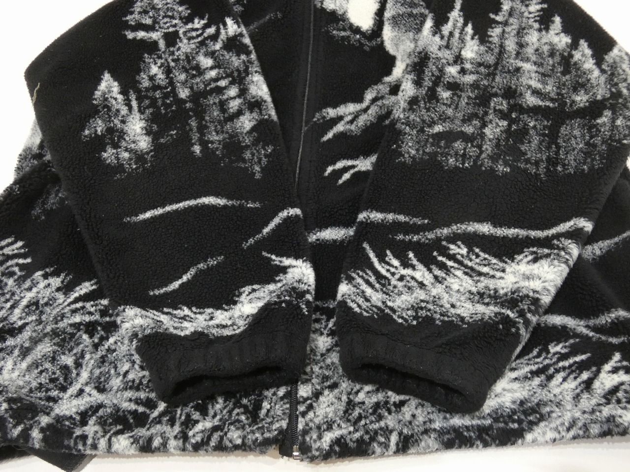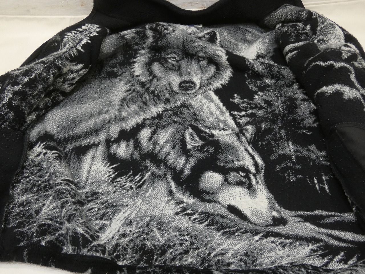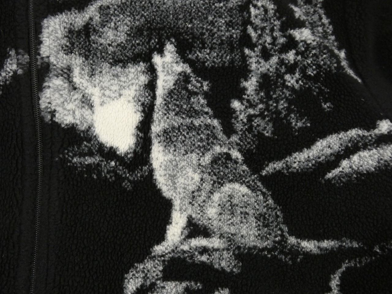 こちらは、90年代頃のアメリカ製 アートアンリミテッド オオカミ 総柄 フリース ジャケットになります。