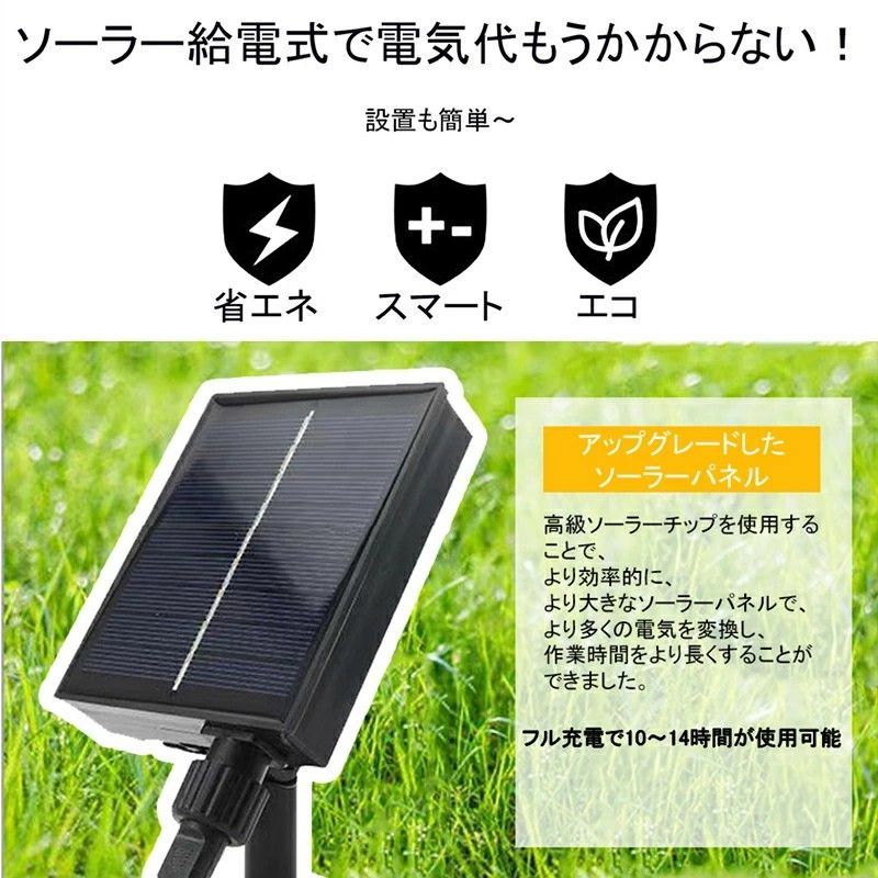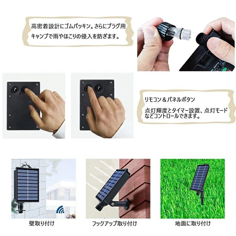 【屋外対応可能】LEDイルミネーションライトライトとソーラーパネルは防水で雨にも強く、屋外でも安心してお使いいただけます。頑丈な素材を採用しており、破れにくく、耐久性あり、いろんな天候に対応できます。庭園の植物、広場、街路樹などの装飾に最適です。