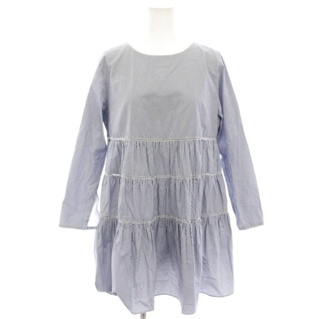 【商品名】スピック&スパン Spick&Span チュニック ブラウス シャツ プルオーバー 長袖 ストライプ レース F 水色 ライトブルー 白 ホワイト /HN