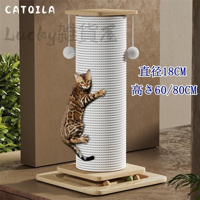 猫爪とぎポール キャットタワー 極太 ロング 本体 おもちゃ 麻巻き 据え置き 直径 18cm 高さ