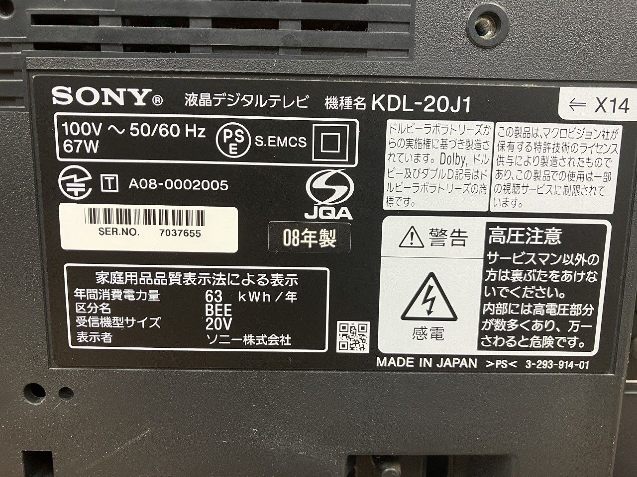 ■【商品名】★状態良好★ SONY ソニー ブラビア KDL-20J1-B 20V型 ハイビジョン 液晶テレビ ブラック ☆★