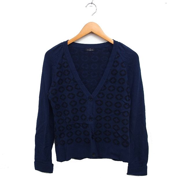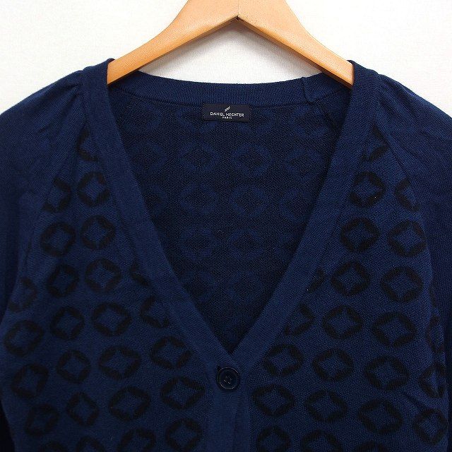 【商品名】ダニエルエシュテル DANIEL HECHTER 総柄 カーディガン Vネック アンゴラ混 2 ネイビー 紺 /FT34