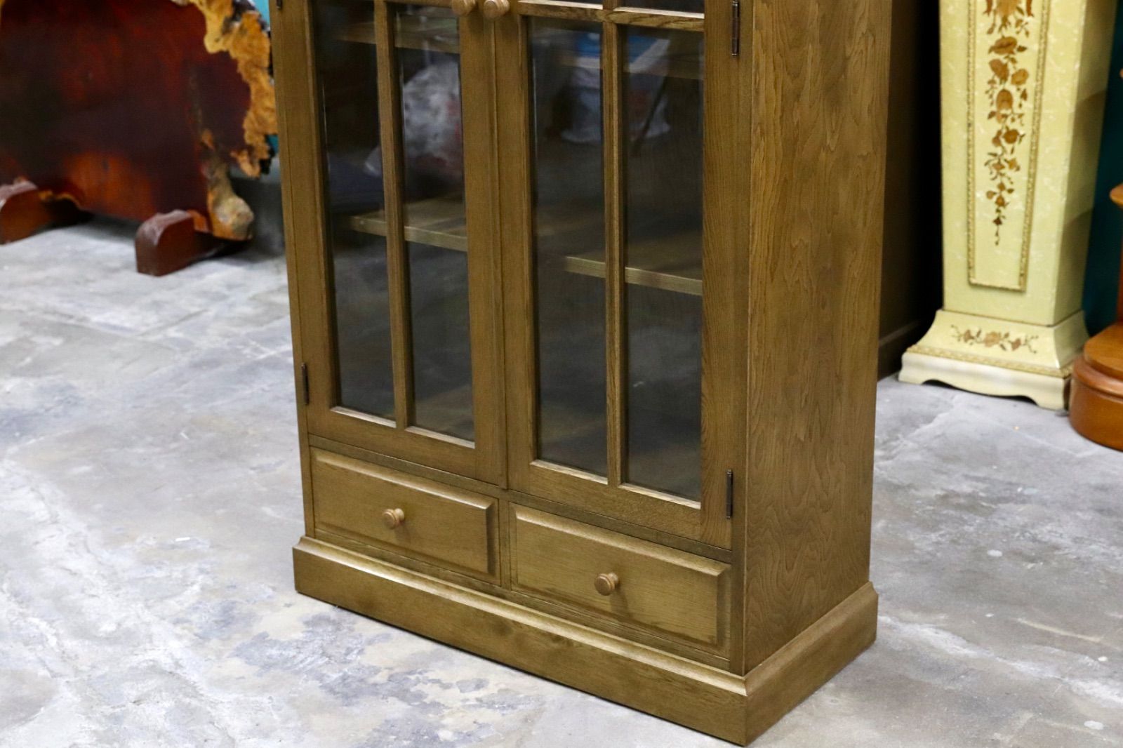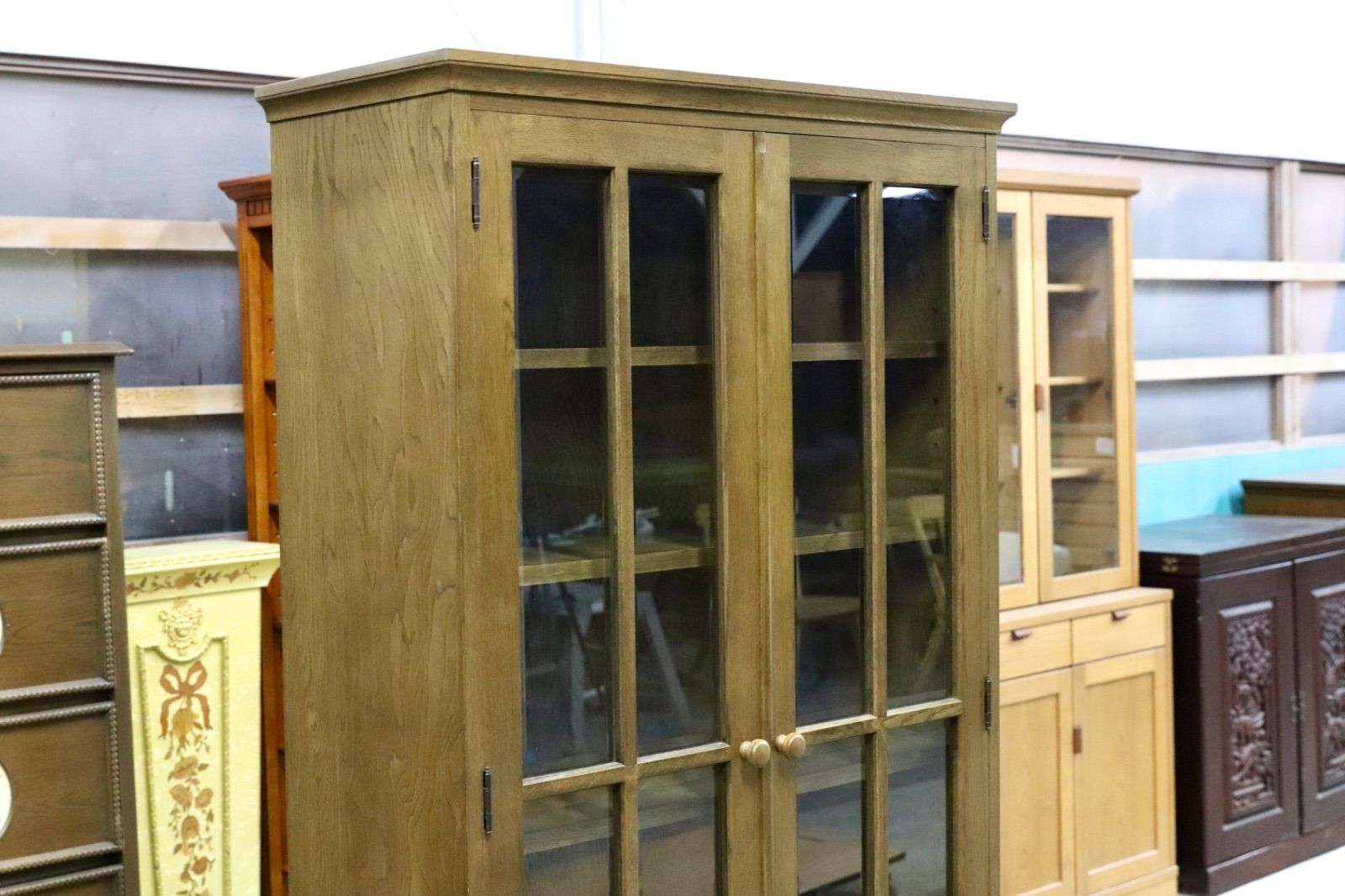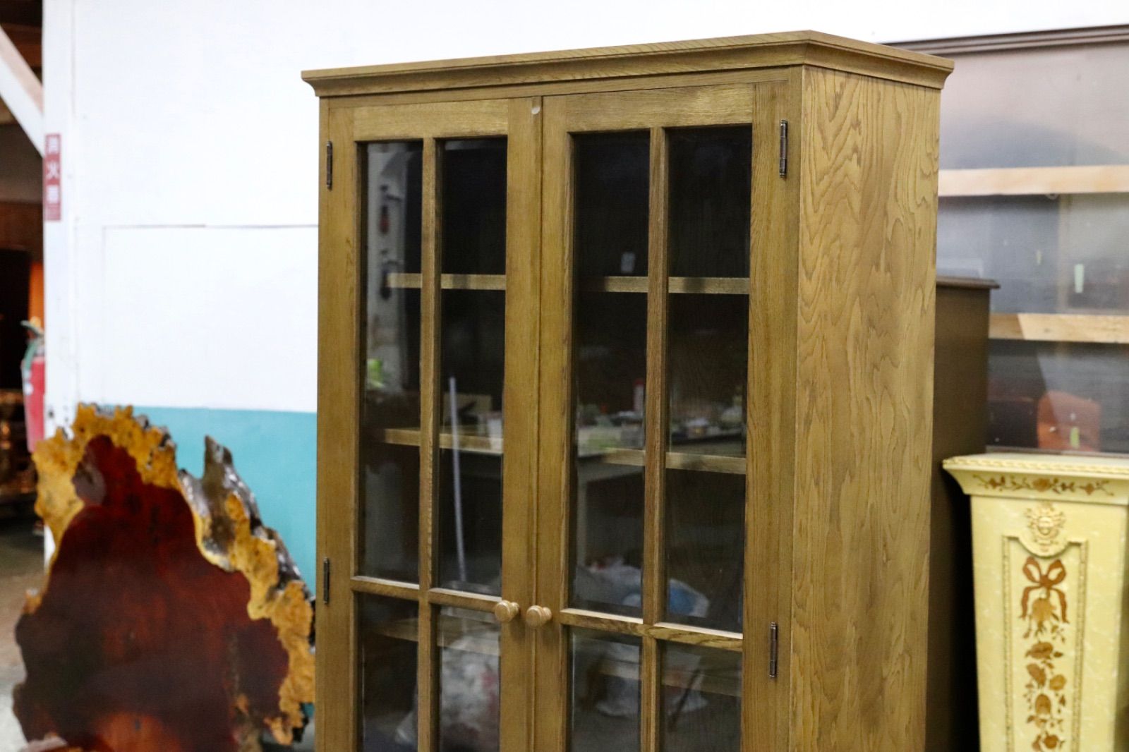 GMIS342○和光 楢材 ブックキャビネット ブックシェルフ 本棚 本箱 和家具 キャビネット 飾り棚 レトロ アンティーク調