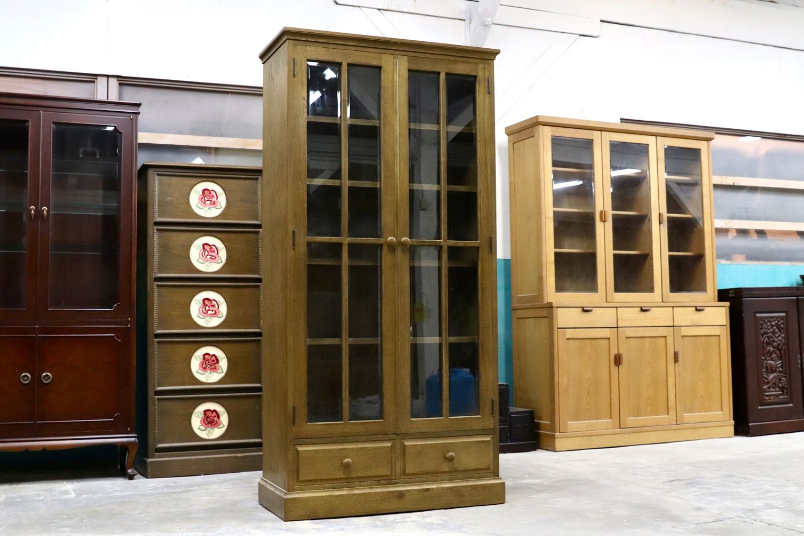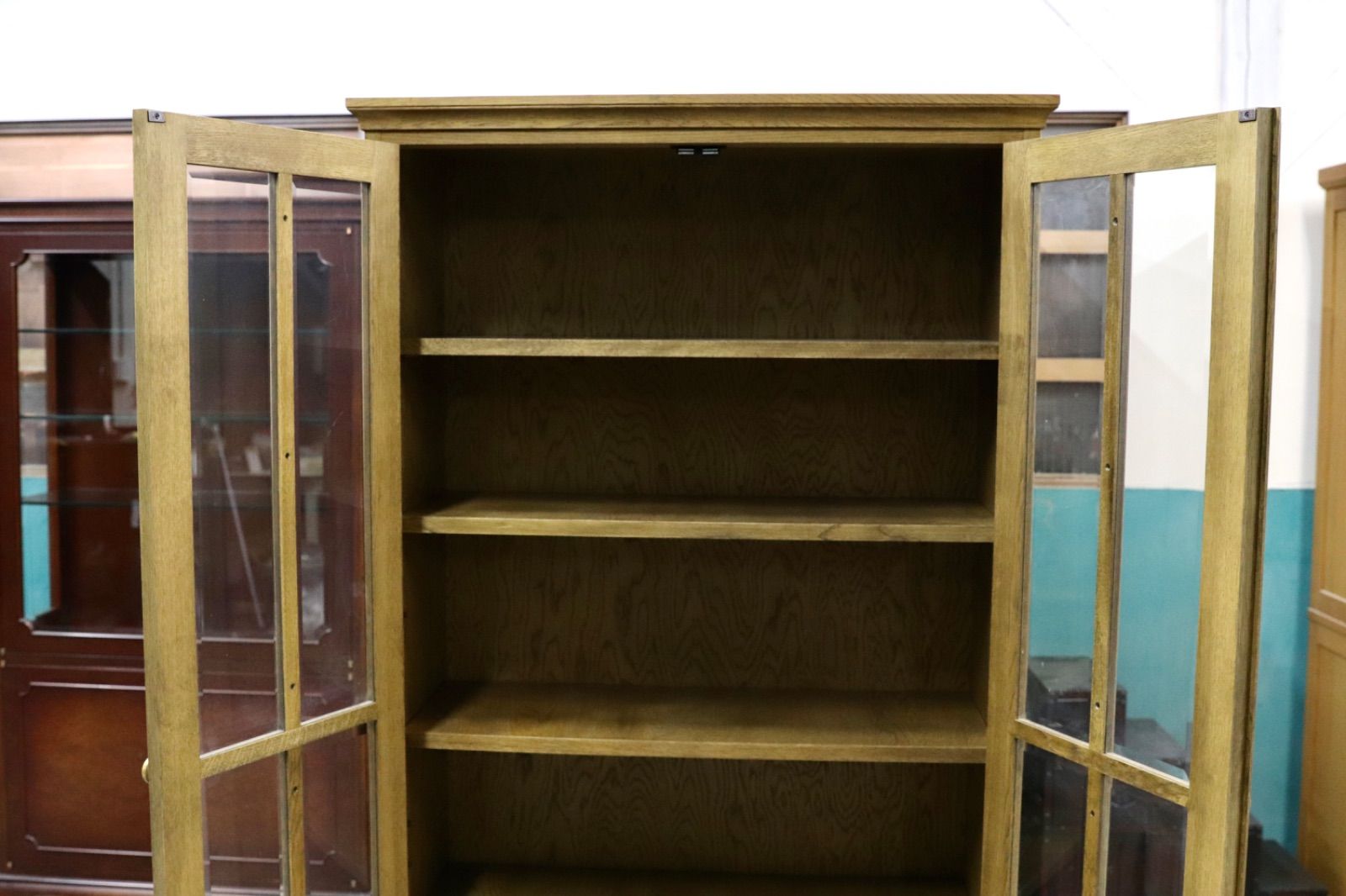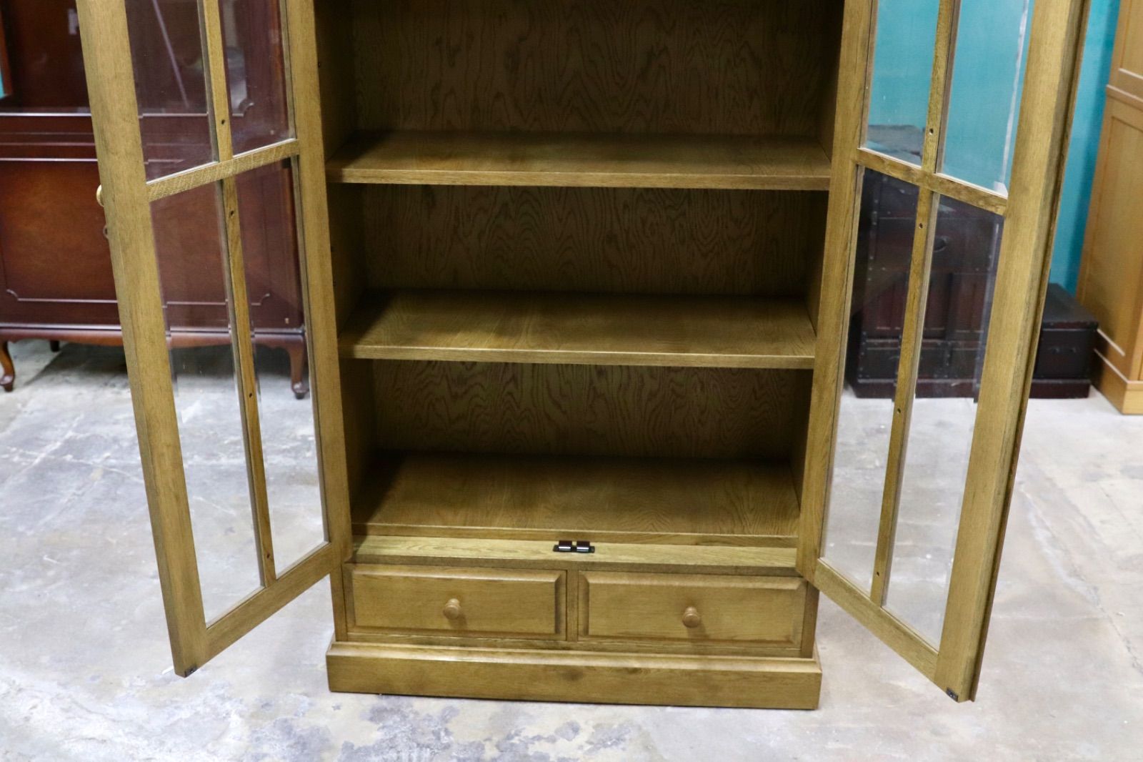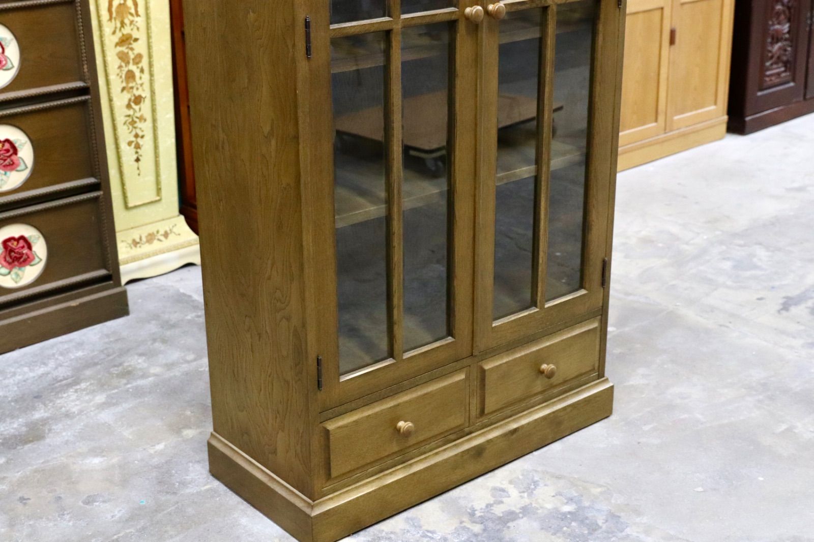 GMIS342○和光 楢材 ブックキャビネット ブックシェルフ 本棚 本箱 和家具 キャビネット 飾り棚 レトロ アンティーク調