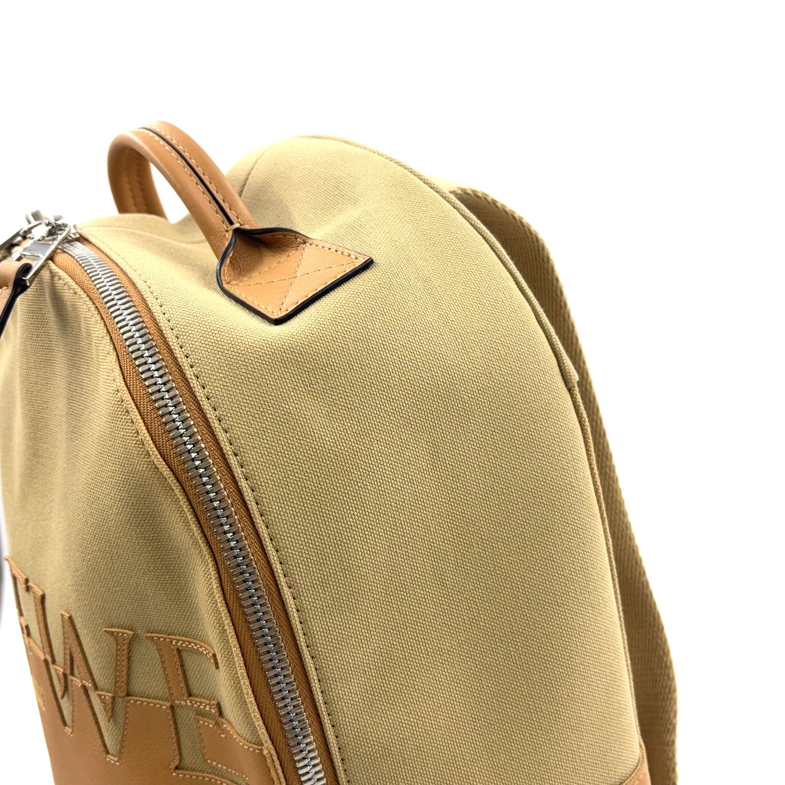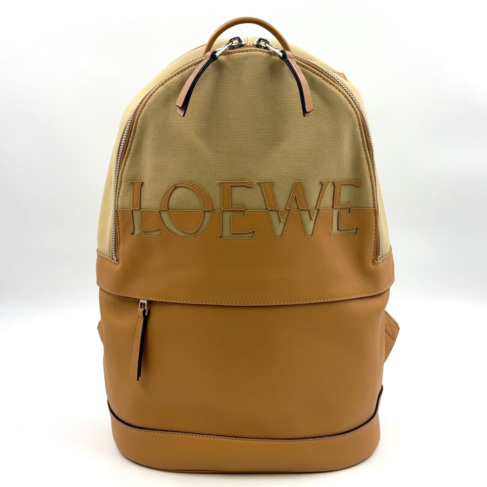 【商品名】LOEWE ラウンド レザー×キャンバス ブラウン バックパック シルバー