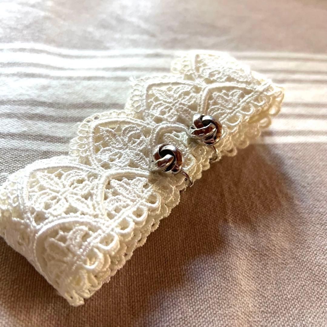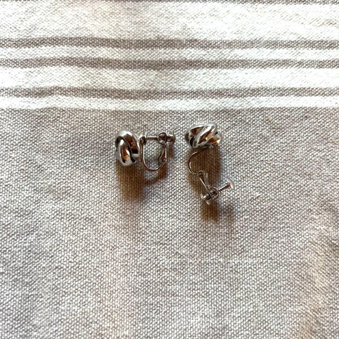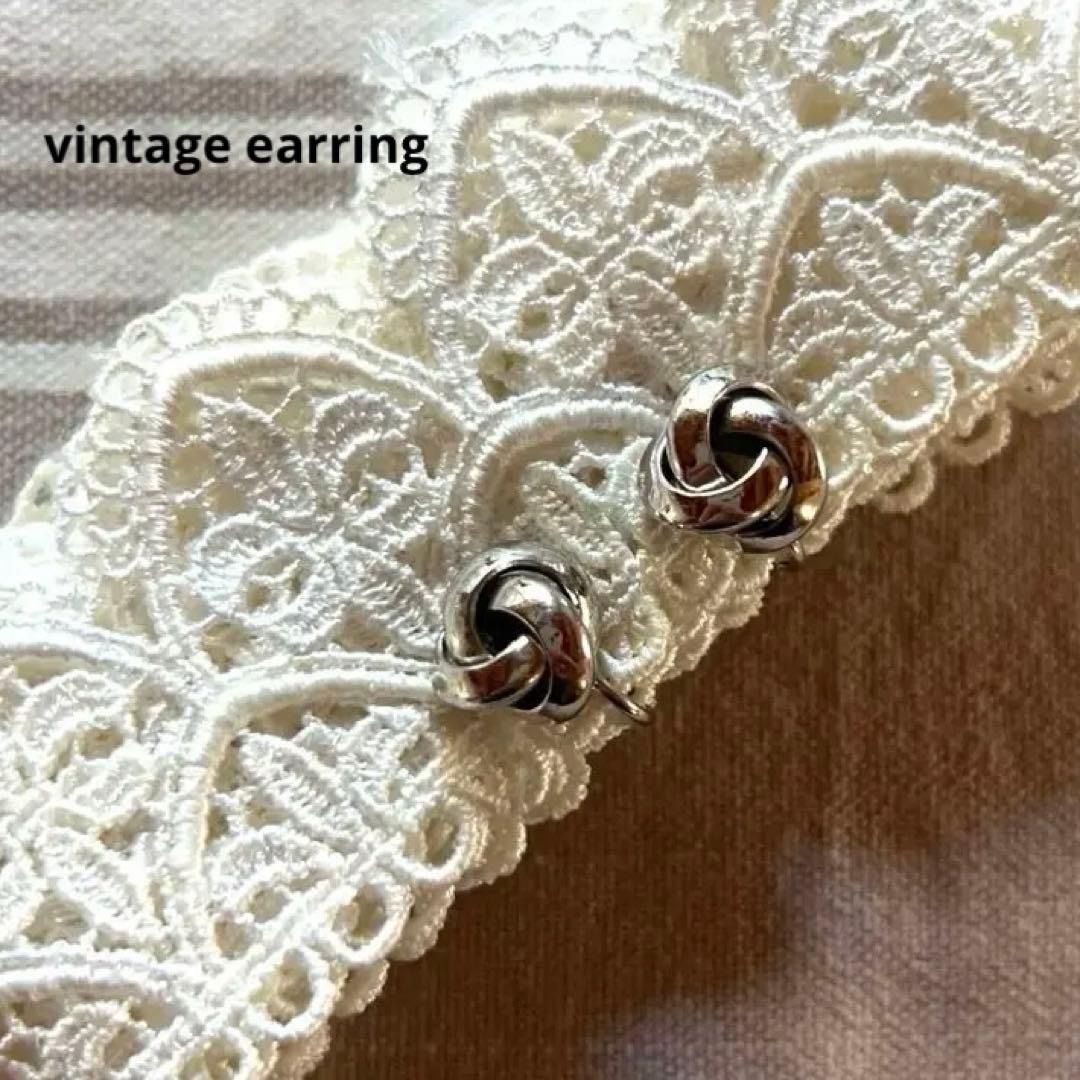 シルバーのノットデザインがシンプルでステキなビンテージイヤリングです。すっきりデザインがシチュエーションを選ばずオンオフともに活躍するアイテム