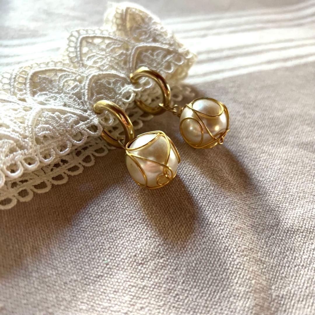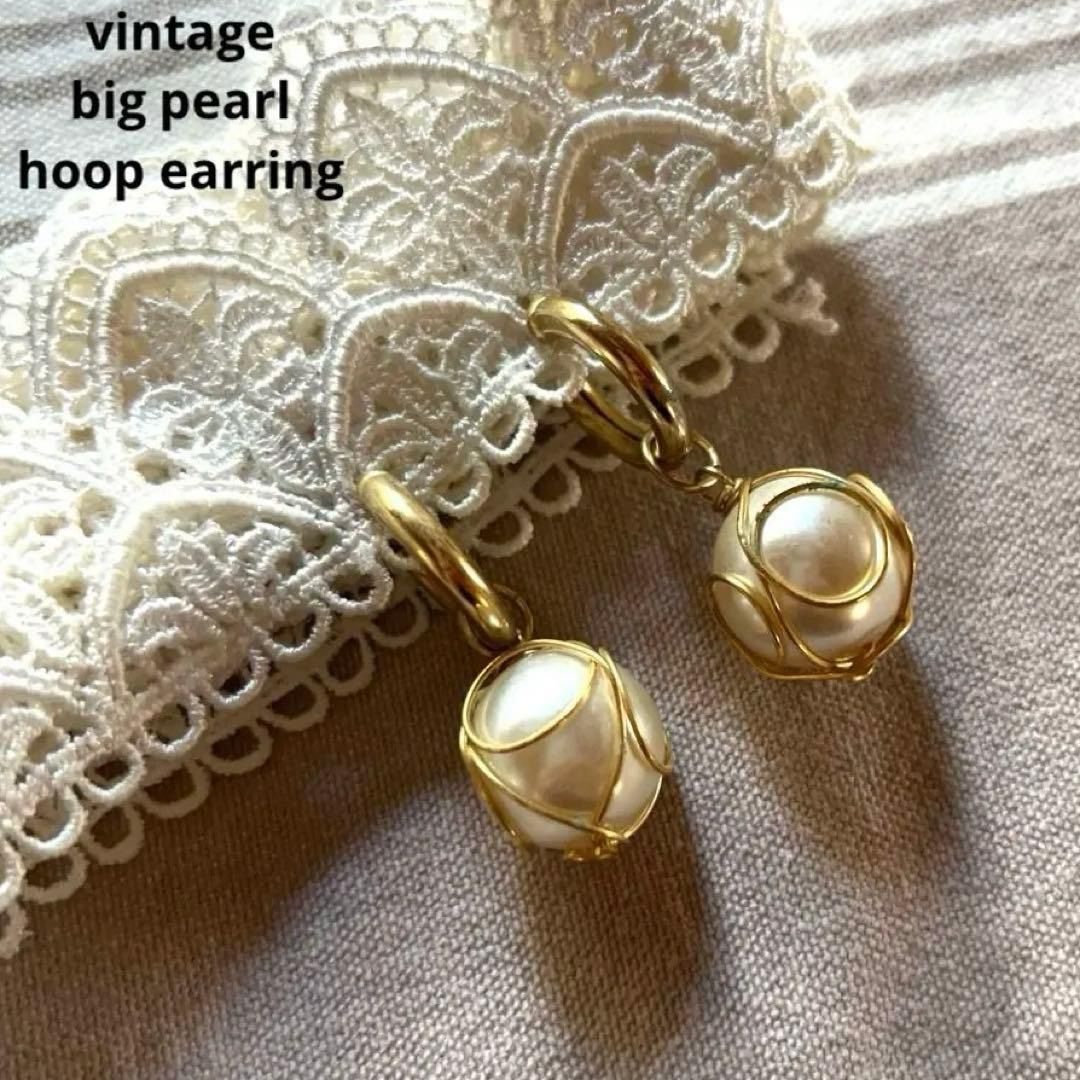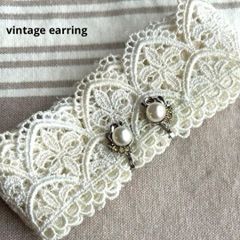 大粒パールがゆらゆらと揺れるビンテージイヤリングです。存在感があり付けるだけで華やかになるアイテム