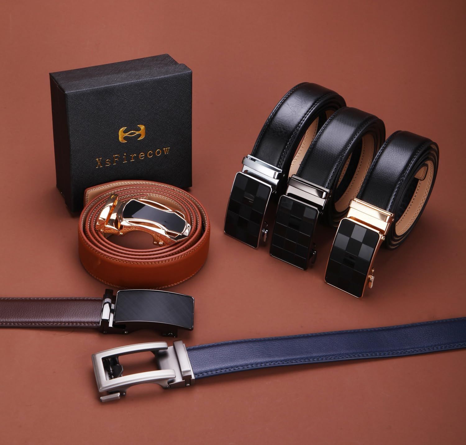 XsFireCow ベルト メンズ 大きいサイズ おしゃれ 長いベルト オートロック式 穴なし 紳士ベルト ロング ビジネス スーツ 無段階 男性ベルト 130cm