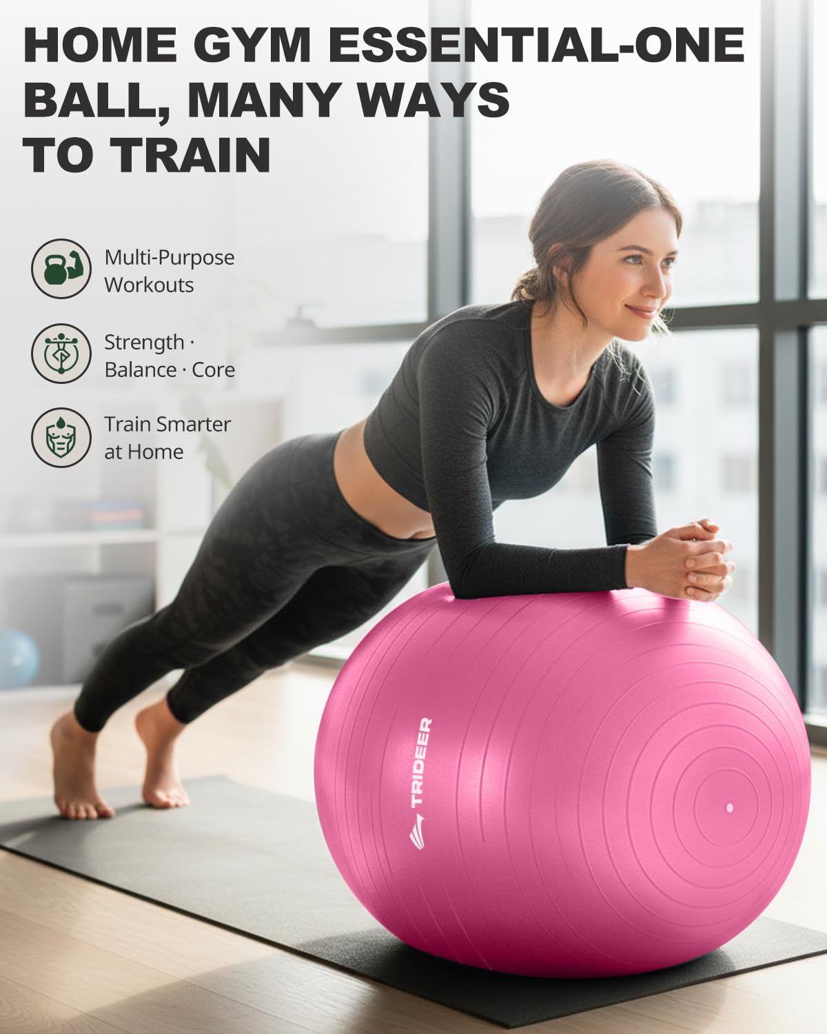 Trideerエクササイズボールには、クイックインフレーションポンプ(ハンドポンプを装備した45/55/65cm、フットポンプ搭載、75/85cm)、エアストッパー2つ、詳細な説明書が付属します。すべてのニーズを満たす5つのサイズをご用意しています。