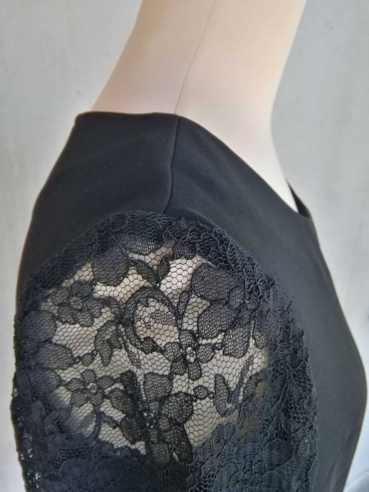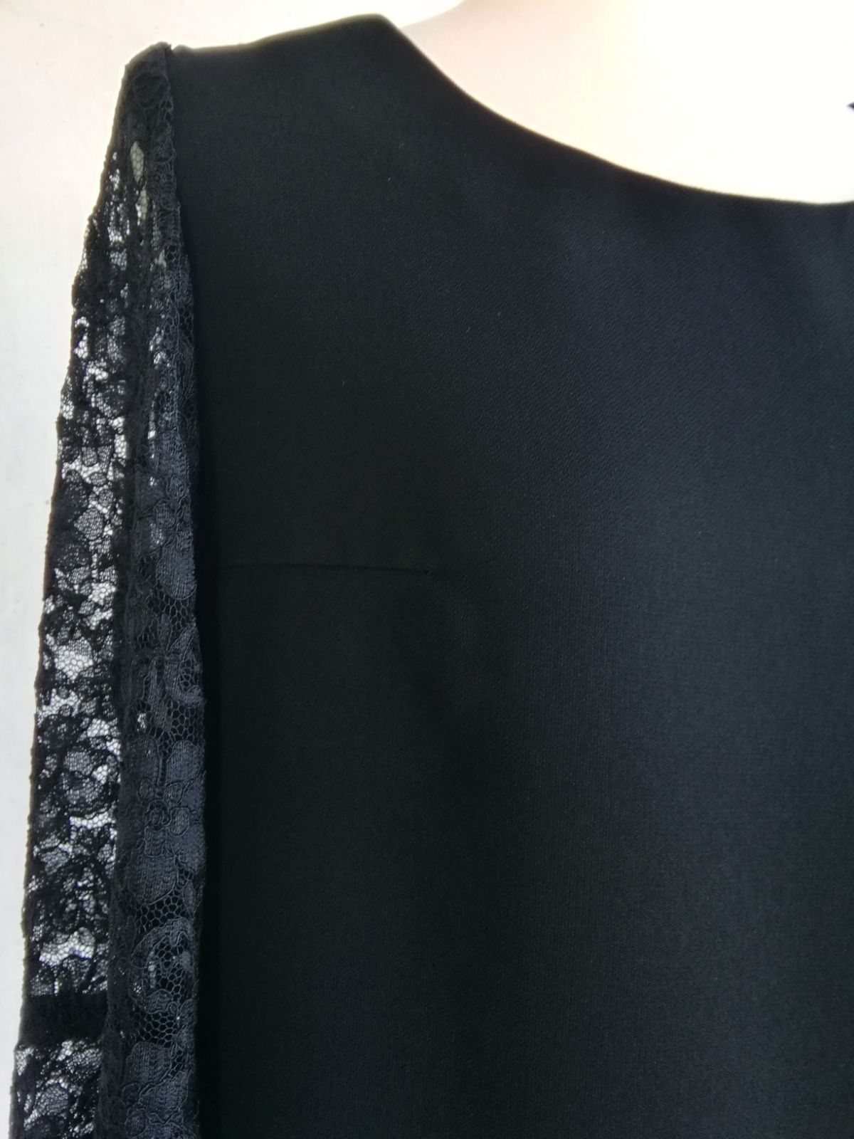袖の繊細なレース使いが上品な雰囲気を演出し、ゆったりとしたシルエットで体型カバーも叶います。