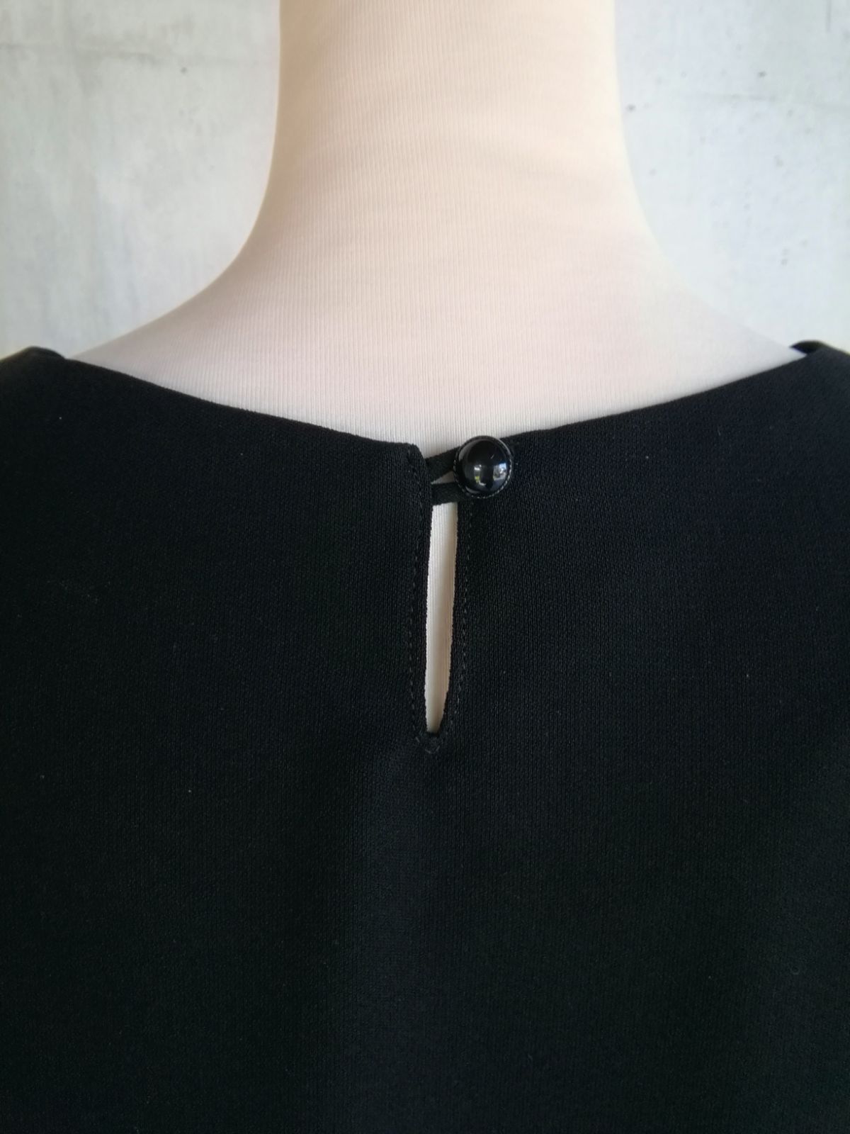通年着用可能な素材を使用した、オールシーズン対応のブラックフォーマルチュニックブラウスです。