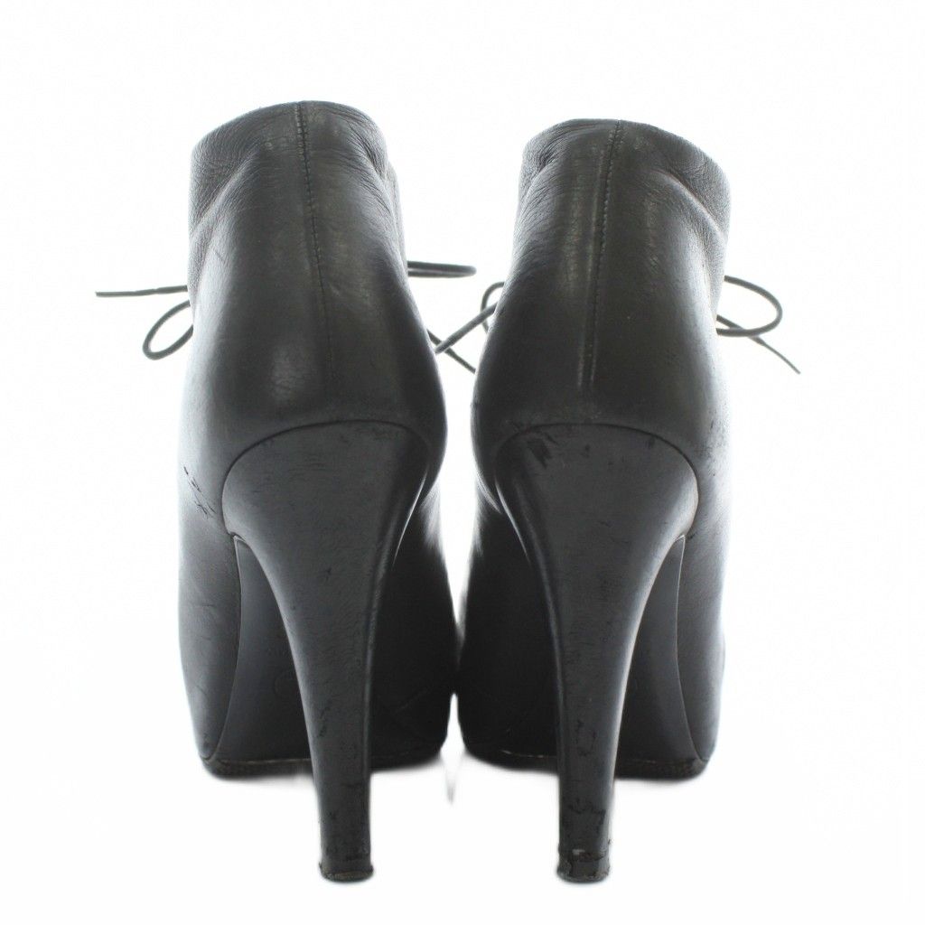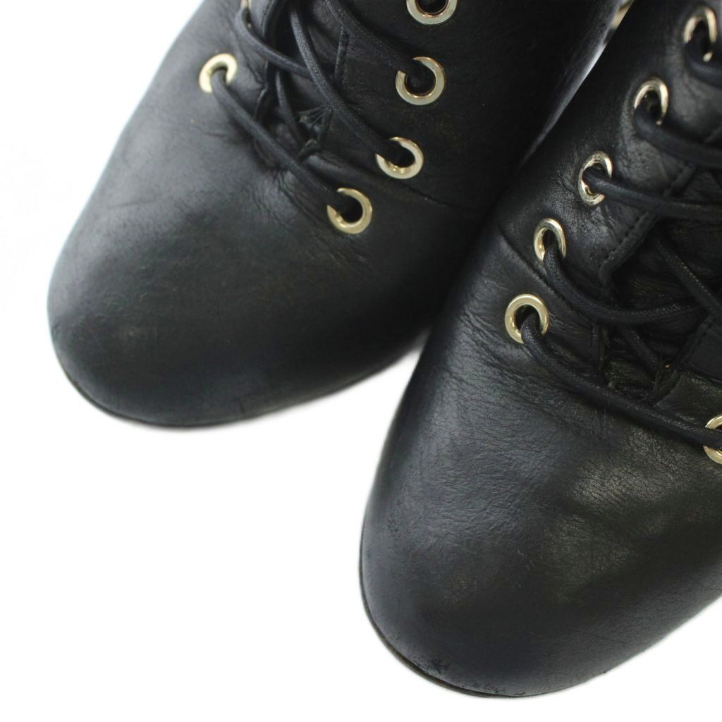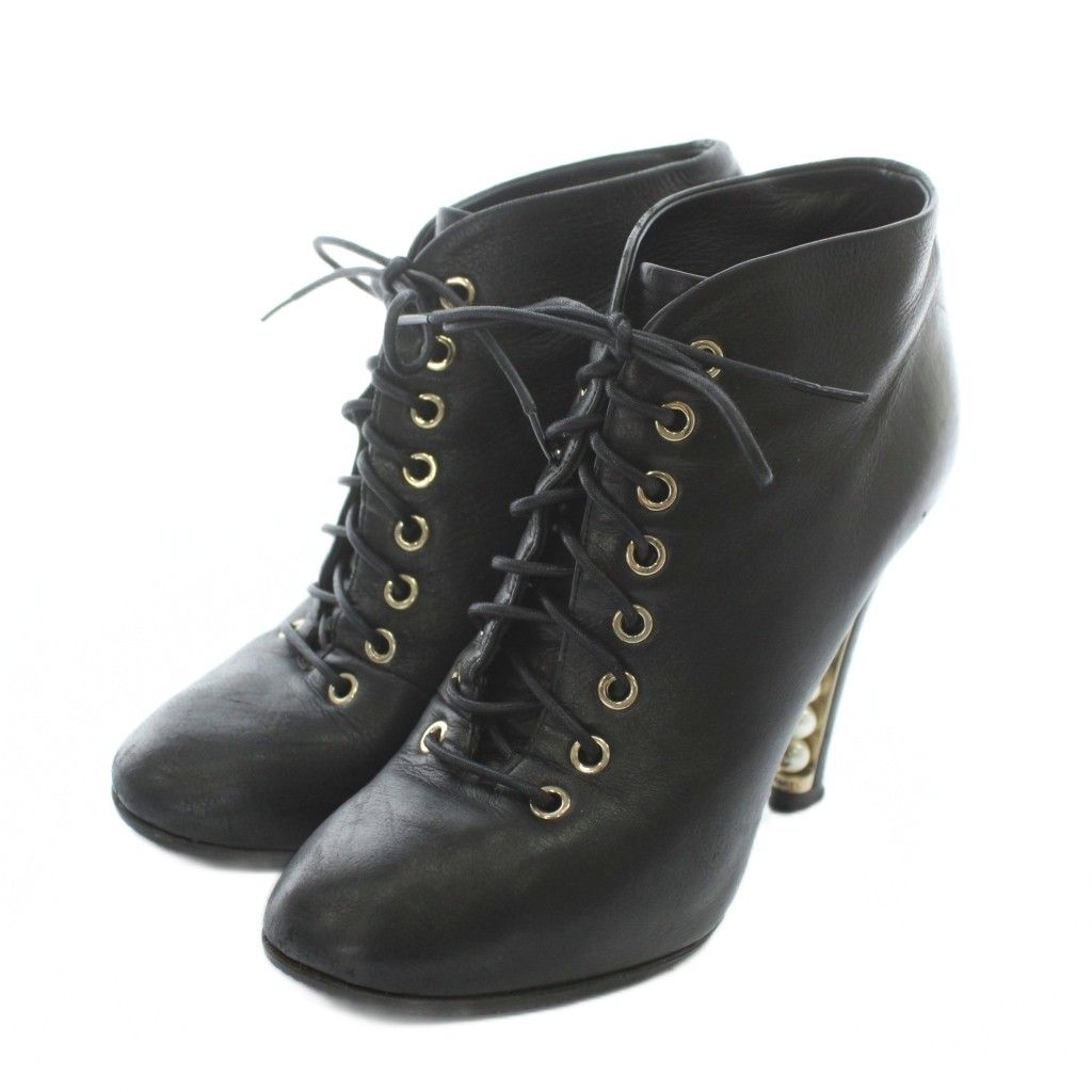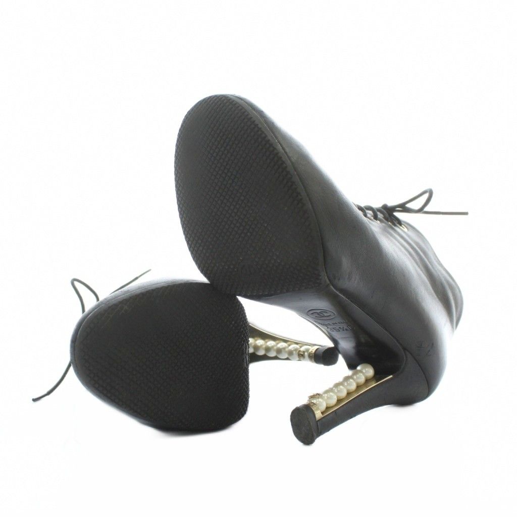【商品名】シャネル CHANEL ショートブーツ レザー ラウンドトゥ ハイヒール パール 編み上げ レースアップ 35.5 22.5cm 黒 ブラック /XZ ■GY18