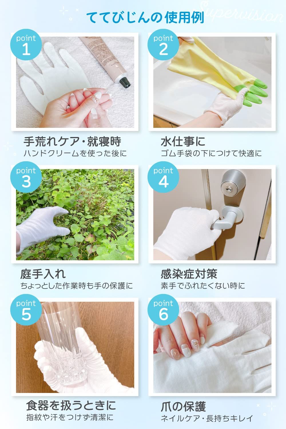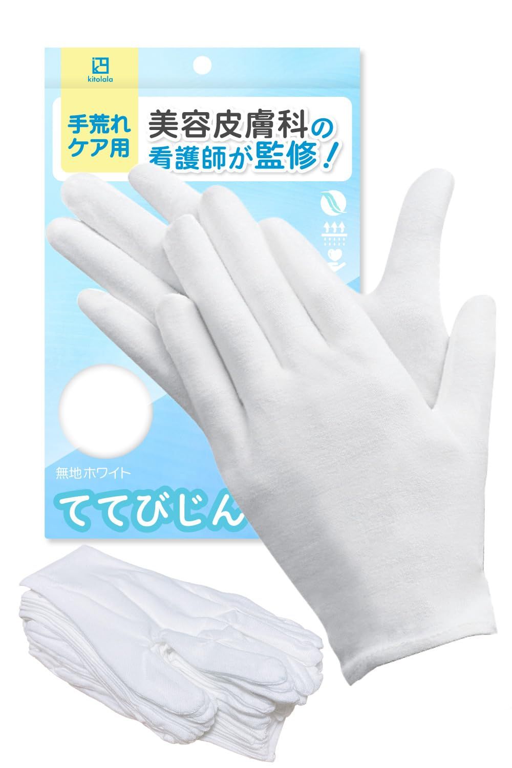 【美容皮膚科の看護師監修】 綿手袋 より優しい 手荒れ 手袋 保湿手袋 白手袋 就寝 ナイト手袋 4組8枚 Lサイズ レディース 子供 ててびじん kitolala (4, L)
