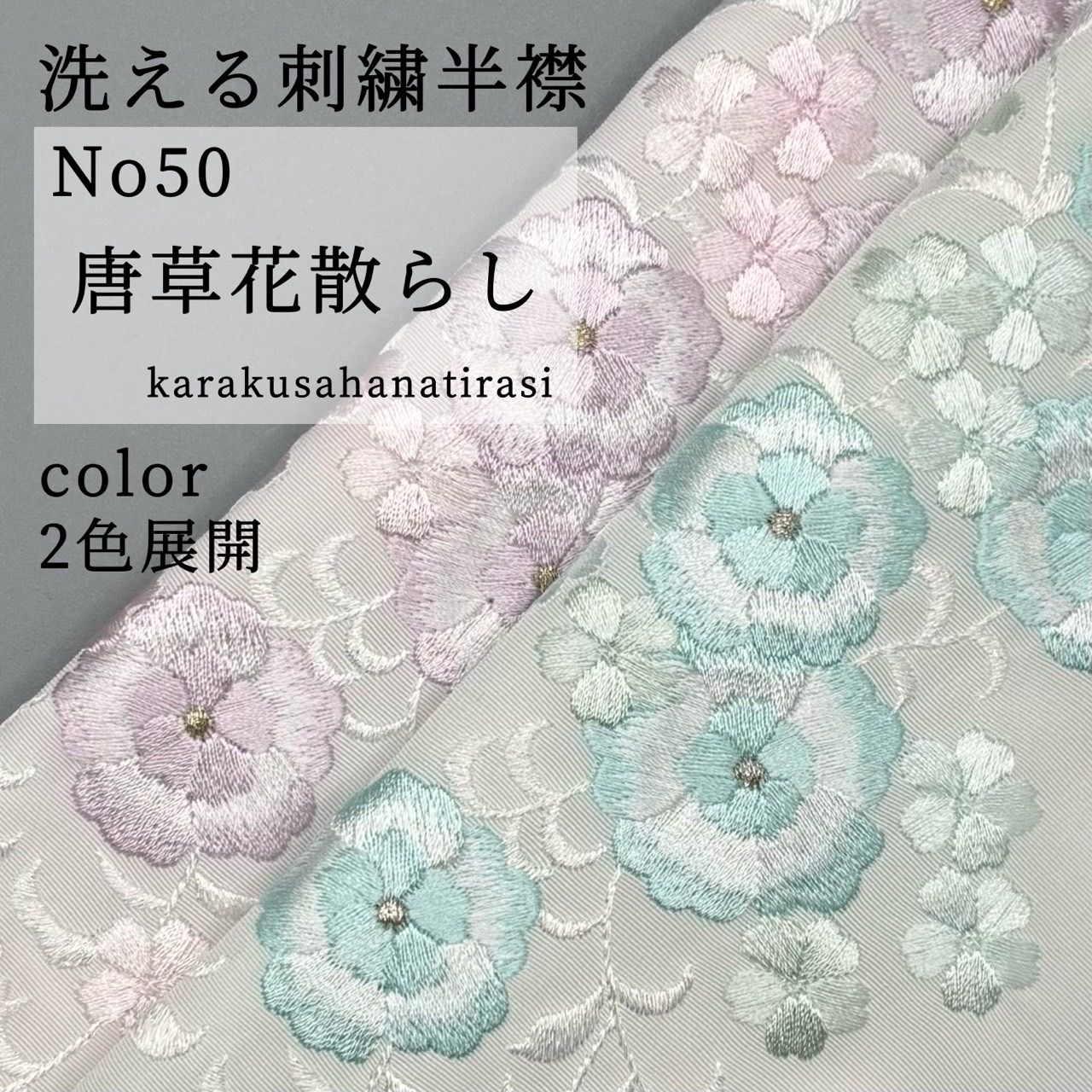 ※本品は洗える刺繍半襟となっています。優しく手で揉み洗いの後、自然乾燥後刺繍面の裏からアイロンをすることで、